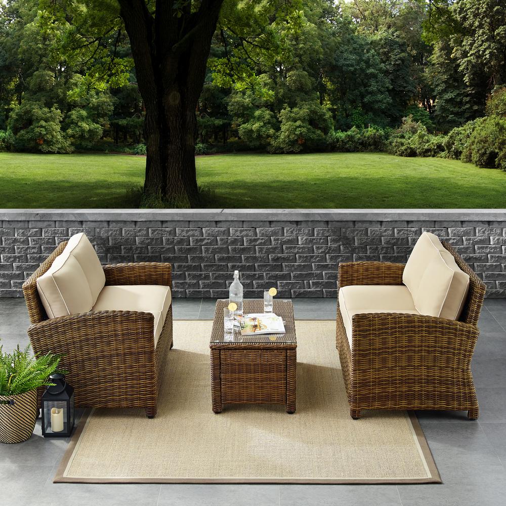 Bradenton 3Pc Outdoor Wicker Conversation Set Sand/Weathered Brown - Coffee Table & 2 Loveseats