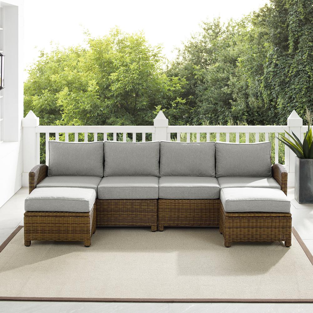 Bradenton 4Pc Outdoor Wicker Sectional Set Gray /Weathered Brown - Left Loveseat, Right Loveseat, & 2 Ottomans