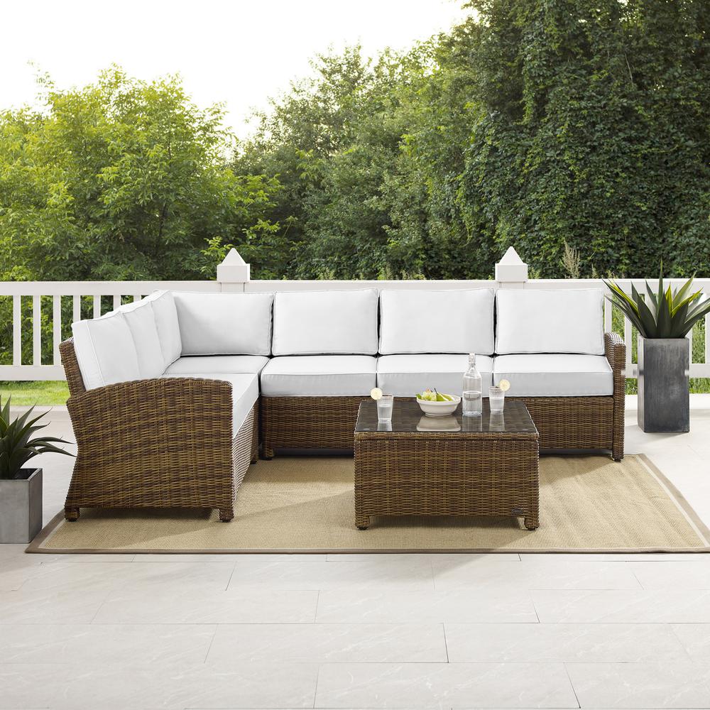 Bradenton 5Pc Outdoor Sectional Set - Sunbrella White/Weathered Brown