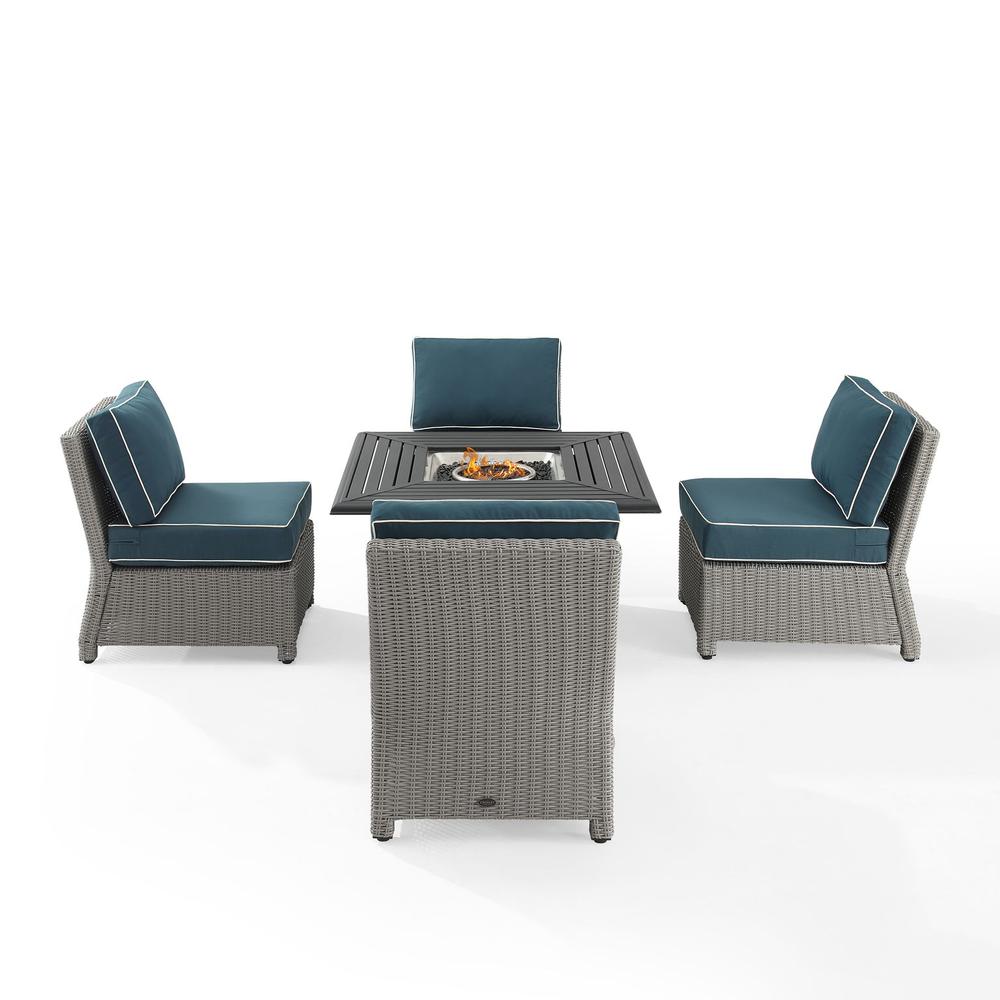 Bradenton 5Pc Outdoor Wicker Conversation Set W/Fire Table Navy/Gray - Dante Fire Table & 4 Armless Chairs