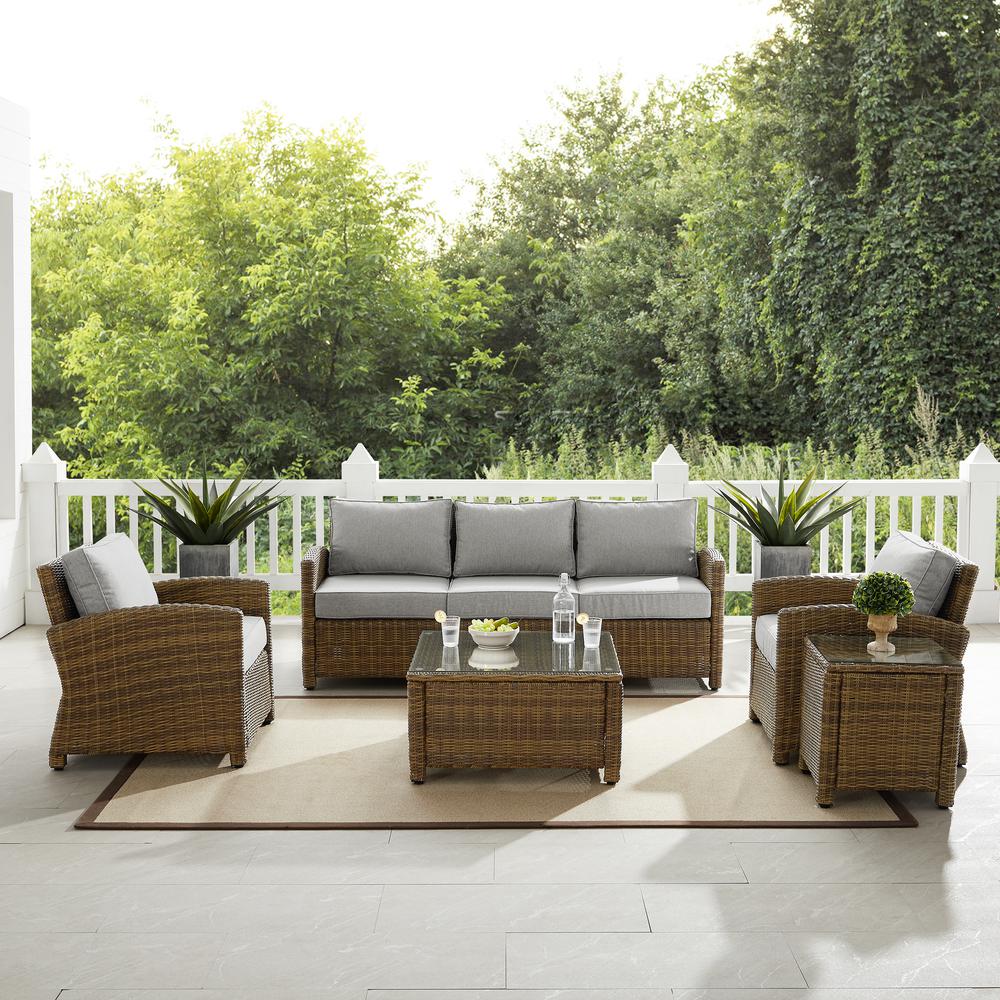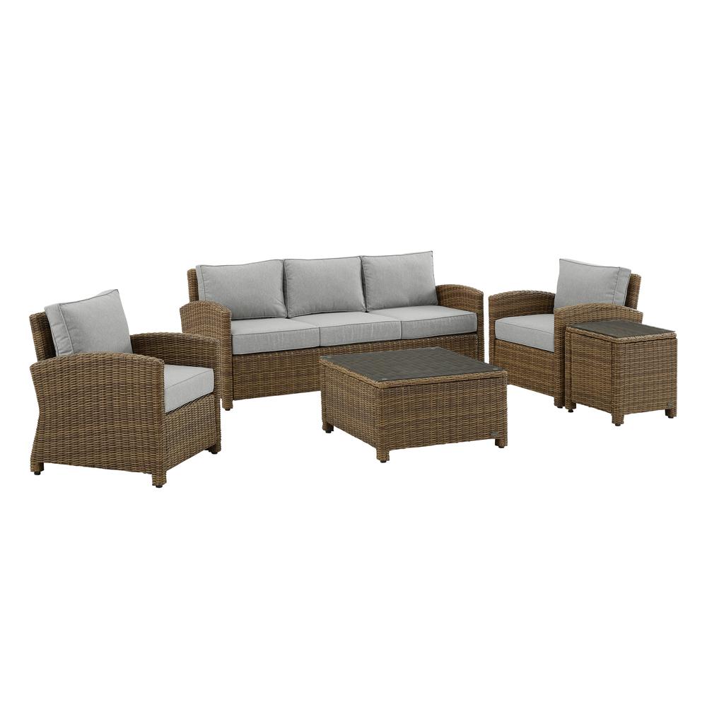 Bradenton 5Pc Outdoor Wicker Sofa Set Gray/Weathered Brown - Sofa, Side Table, Coffee Table, & 2 Armchairs