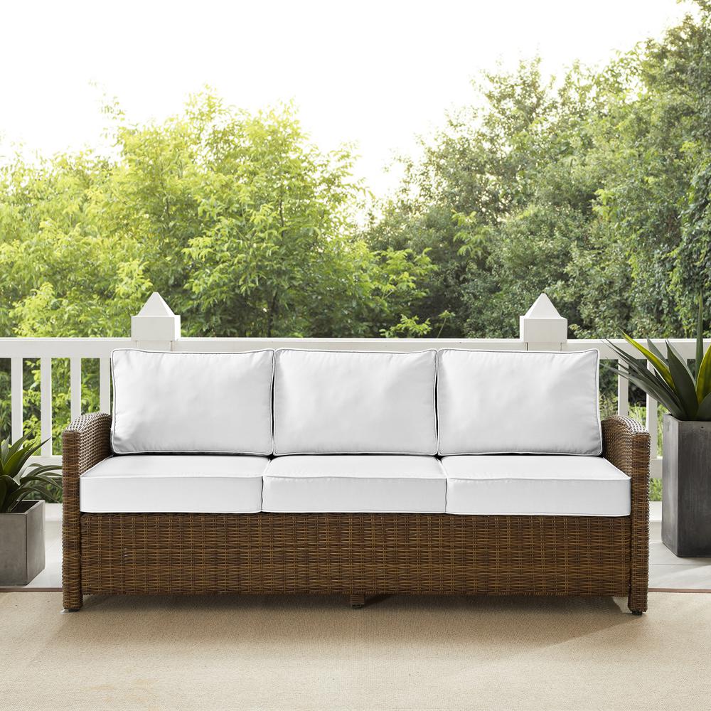 Bradenton Outdoor Wicker Sofa - Sunbrella White/Weathered Brown