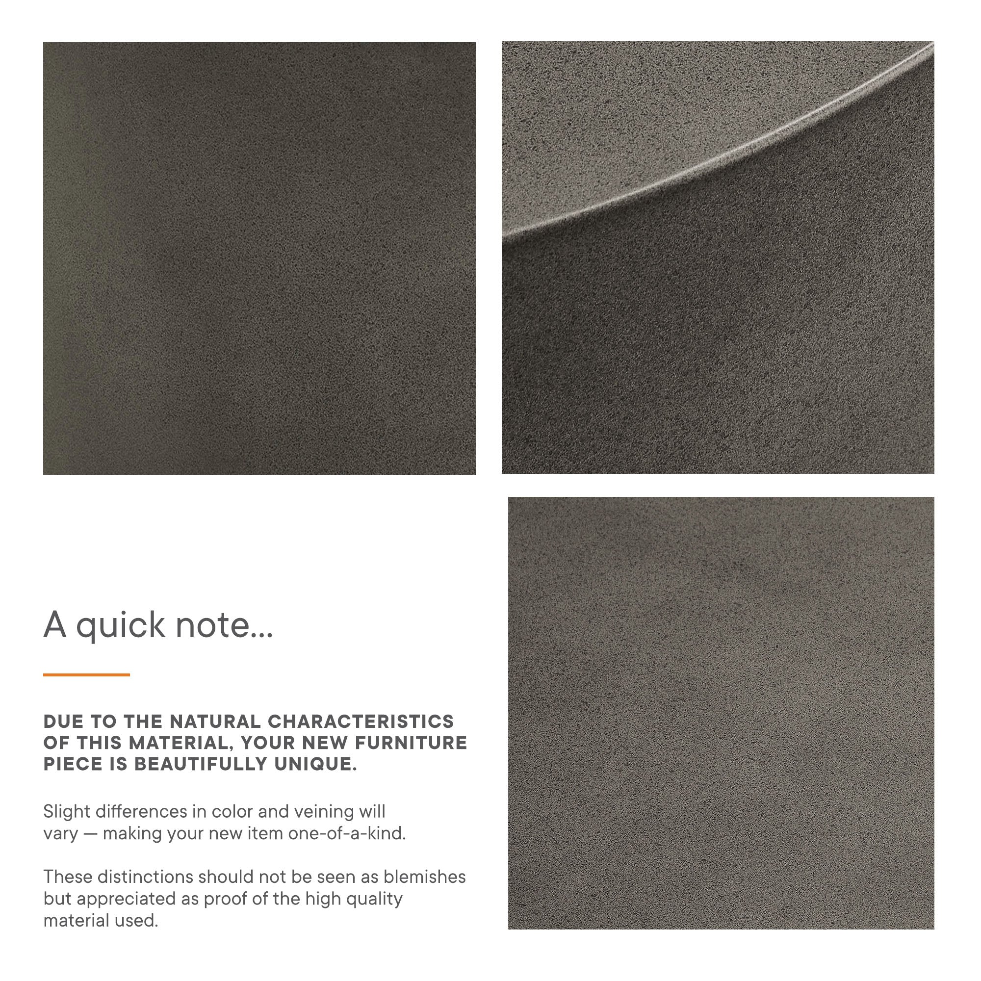 Bold yet refined, the Brion 34" round concrete coffee table offers a striking blend of modern minimalism and functional design. With its sleek, smooth finish and tapered cylinder shape, this round drum coffee table creates a captivating focal point in any living room or outdoor patio. Whether used as a concrete indoor/outdoor table or a low coffee table for small spaces, BrionÕs solid construction ensures both durability and visual appeal. Its broad, circular top offers plenty of space for drinks, decor, or even as a large plant stand accent table. Designed with practicality in mind, Brion features built-in levelers to provide stability on uneven surfaces, making it the ideal outdoor coffee table or living room center table. Arriving fully assembled, the Brion concrete coffee table round is ready to enhance your space with its chic, contemporary style. Weight Capacity: 230 lbs. One - Brion Round Indoor/Outdoor Patio Coffee Table