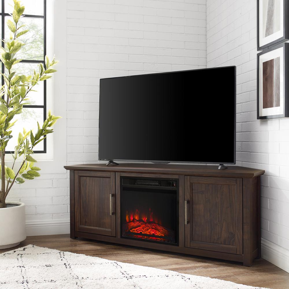 Camden 58" Corner Tv Stand W/Fireplace Dark Walnut