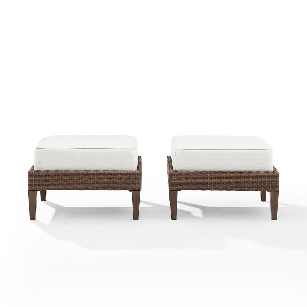 Capella 2Pc Outdoor Wicker Ottoman Set Creme/Brown - 2 Ottomans