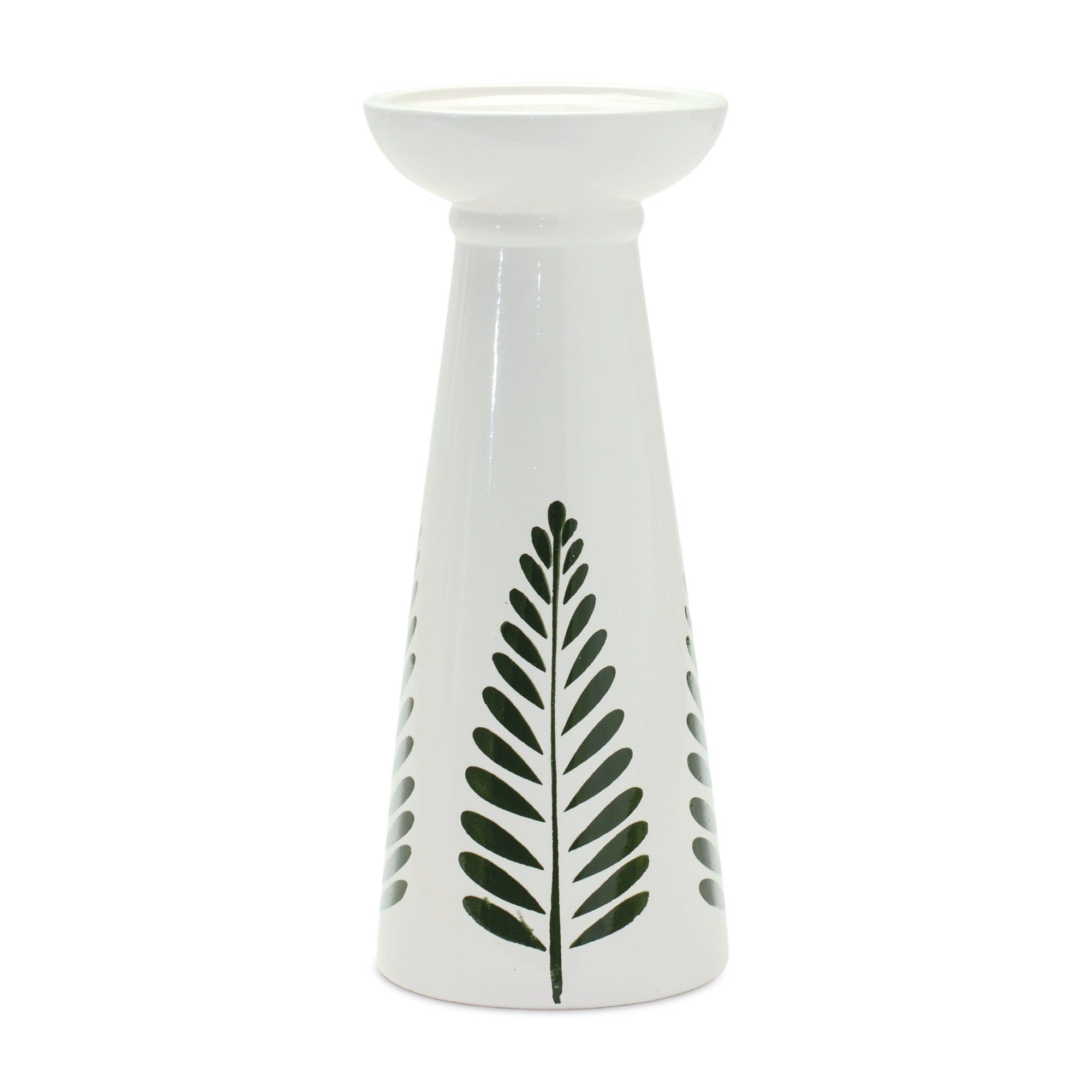 Decorate your home with this beautiful set of Ceramic Leaf Candle Holders. The modern leaf print design paired with the classic white glazed finish makes this set the perfect addition to any style of decor. The quality ceramic composition is sure to last for seasons to come. Illuminate the piece with real wax or LED candles. Candles sold separately., Candle Holder (Set of 2) 7"H, 10"H Ceramic