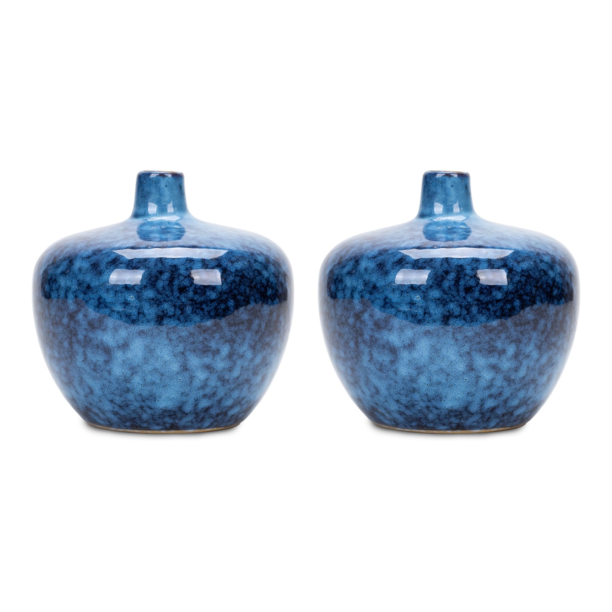 Embellish your living space with this stunning Decorative Ceramic Vase. Featuring cool blue tones with beige accents, this set is sure to draw the attention of your guests. The quality ceramic composition is sure to endure for seasons to come. Complete the look by adding a few faux floral stems or pampas grass sprays., Vase (Set of 2) 6"H Ceramic