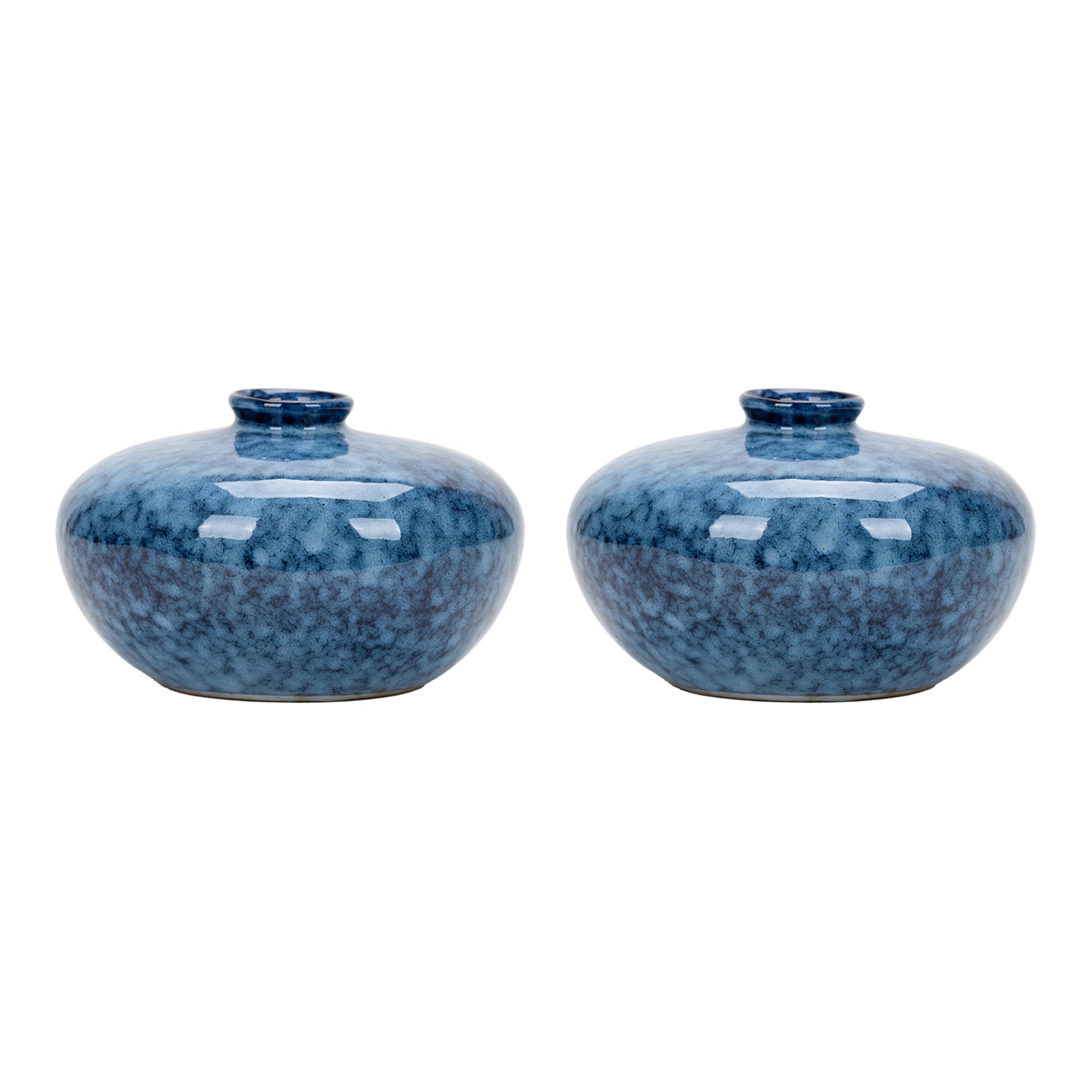 Embellish your living space with this stunning Decorative Ceramic Vase. Featuring cool blue tones with beige accents, this set is sure to draw the attention of your guests. The quality ceramic composition is sure to endure for seasons to come. Complete the look by adding a few faux floral stems or pampas grass sprays., Vase (Set of 2) 7"H Ceramic