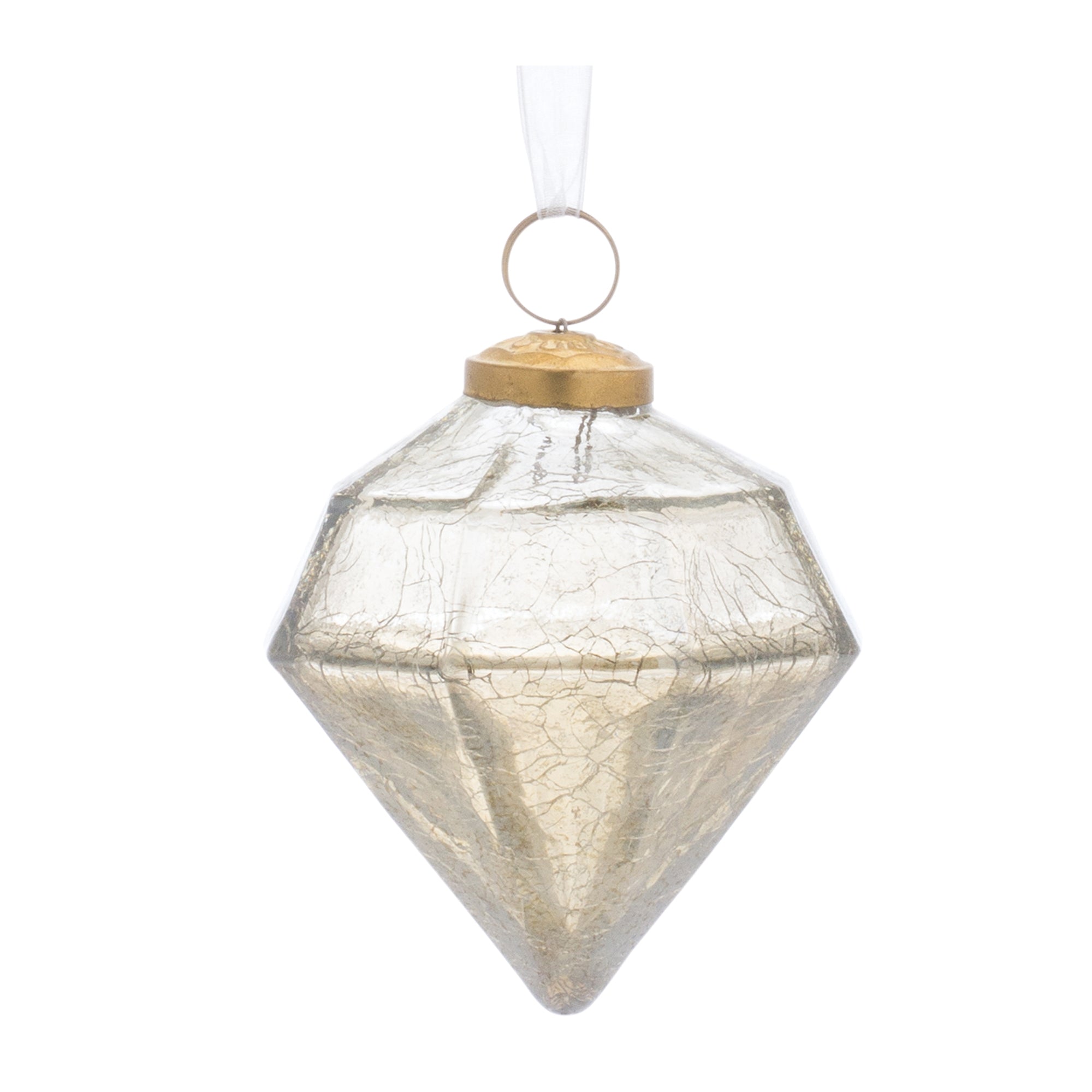 Adorn your Christmas tree and holiday decor with this stunning set of Champagne Crackle Glass Ornaments. Featuring 6 pieces, the unique champagne tones paired with the crackled design is the perfect combination to create a memorable display. The quality glasscomposition and delicate ribbon hanging accent is sure to endure for seasons to come. Whether you're adding a touch of cheer to your home or gifting to a loved one, these ornaments will definitely bring smiles. , Ornament (Set of 6) 4.25"H Glass