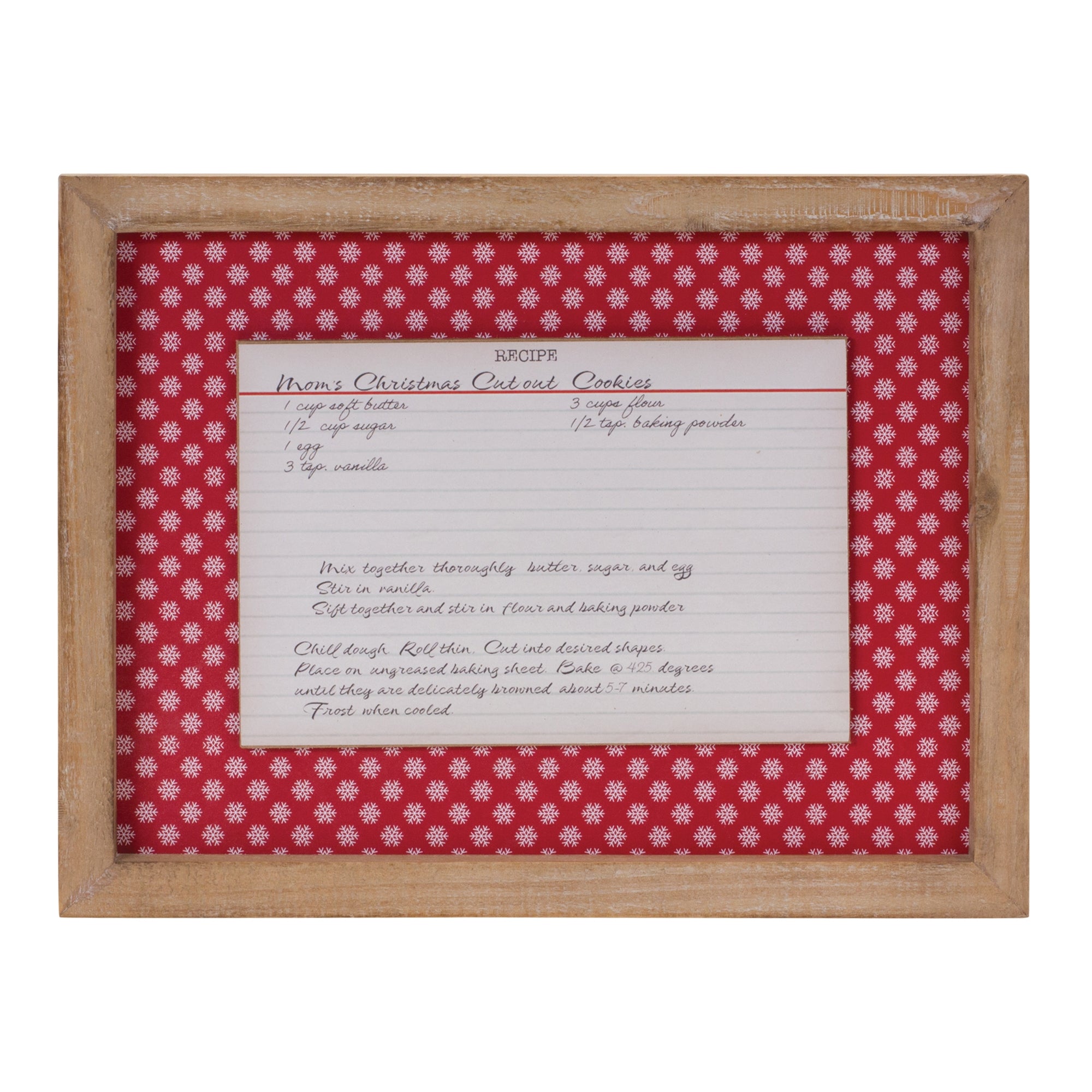Start celebrating the holiday season with a unique Christmas Cookie Recipe Wall Art! Our festive red and white tones, vintage recipe card design, and delicious recipes for "Mom's Christmas Cut Out Cookies" and "Peanut Butter Blossoms" will make your kitchen look like a winter wonderland. Show off your baking skills to your family and friends, and make your holiday decor stand out this year. Get into the spirit of Christmas with our one-of-a-kind Christmas Cookie Wall Art!, Framed Christmas Cookie Recipe (Set of 4) 13.5"L x 10.25"H MDF/Wood