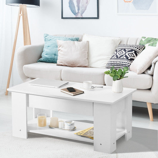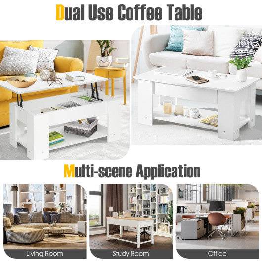 Coffee Table with Lift-up Desktop and Hidden Storage-White