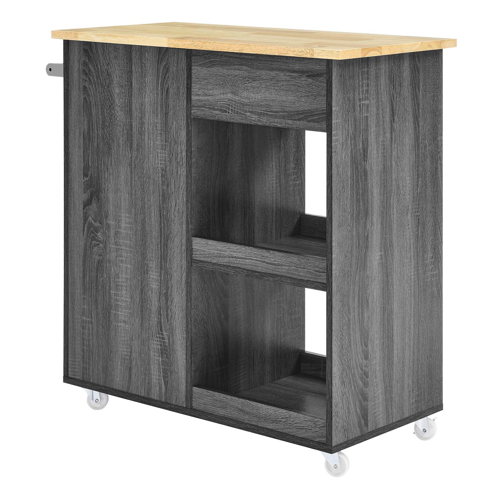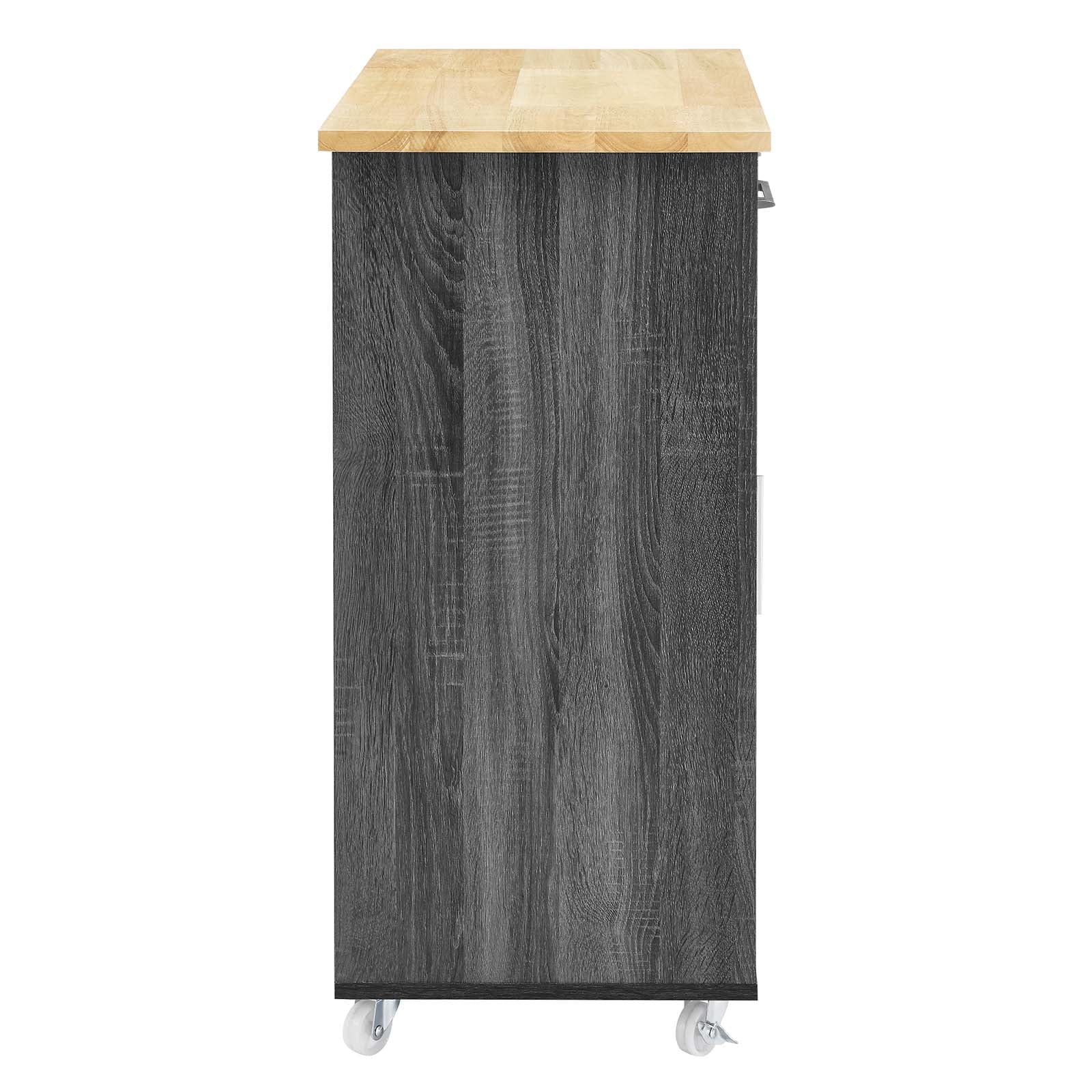 Experience the perfect blend of functionality and elegance with the Culinary Kitchen Cart. Crafted with particleboard and adorned with a beautiful paper laminate, this cart brings a natural aesthetic to your home or apartment. Equipped with four nylon casters with side lock brakes, this kitchen cart glides effortlessly wherever you need it. Organize your kitchen essentials effortlessly with two open shelves, two storage shelves behind a hinged glass-front door, and two full-glide drawers. From small appliances to pots, pans, and cooking utensils, this cart provides ample storage space to keep your kitchen neat and tidy. This kitchen cart features a convenient towel bar on the side. Assembly required. Set Includes: One - Culinary Kitchen Cart With Towel Bar