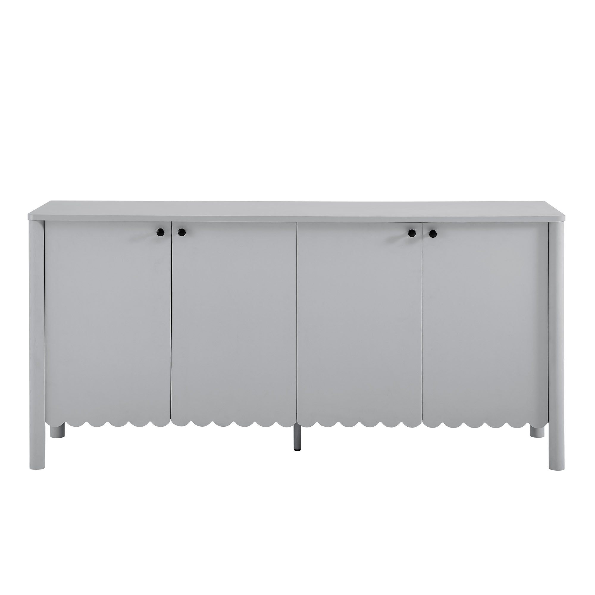 An elegant blend of subtle curves and practical storage, the Emmeline 4-Door Wavy Sideboard Cabinet adds a touch of artistic flair to any room. Its standout featureÑa scalloped bottom edgeÑcreates a soft, flowing silhouette that enhances the modern simplicity of the design. Behind its four soft-close doors, adjustable shelves provide flexible storage space, ideal for organizing dining essentials, decor, or media accessories. Crafted with a sturdy frame and finished in smooth laminate, this wide farmhouse sideboard is as functional as it is stylish. The round door knobs and non-marking glides add to its refined appearance, while ensuring your floors remain protected. Whether serving as a modern sideboard, accent cabinet, or entryway console with storage, Emmeline brings a contemporary, polished look to hallways, dining rooms, or living spaces. Assembly required. One - Emmeline 66" 4-Door Sideboard Cabinet