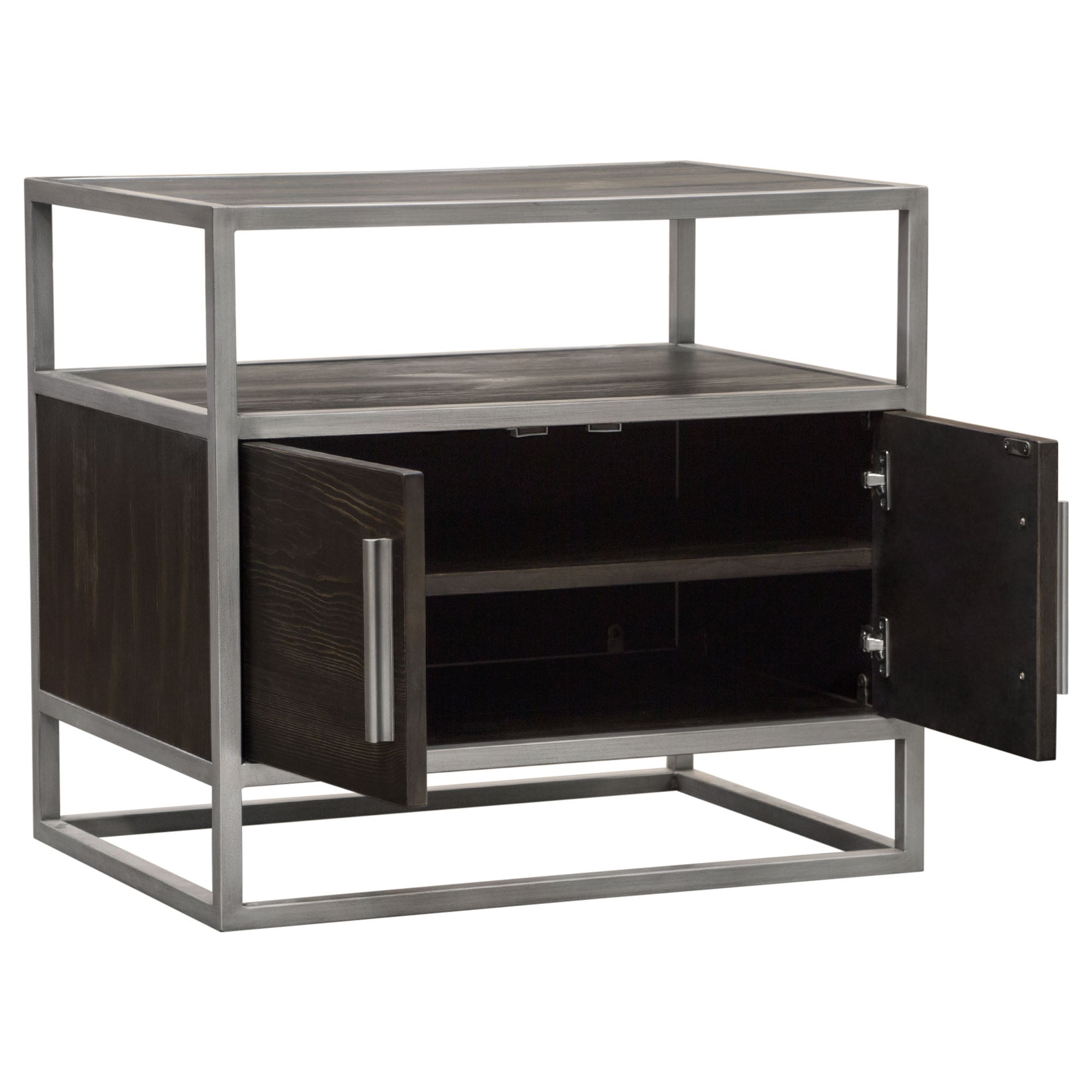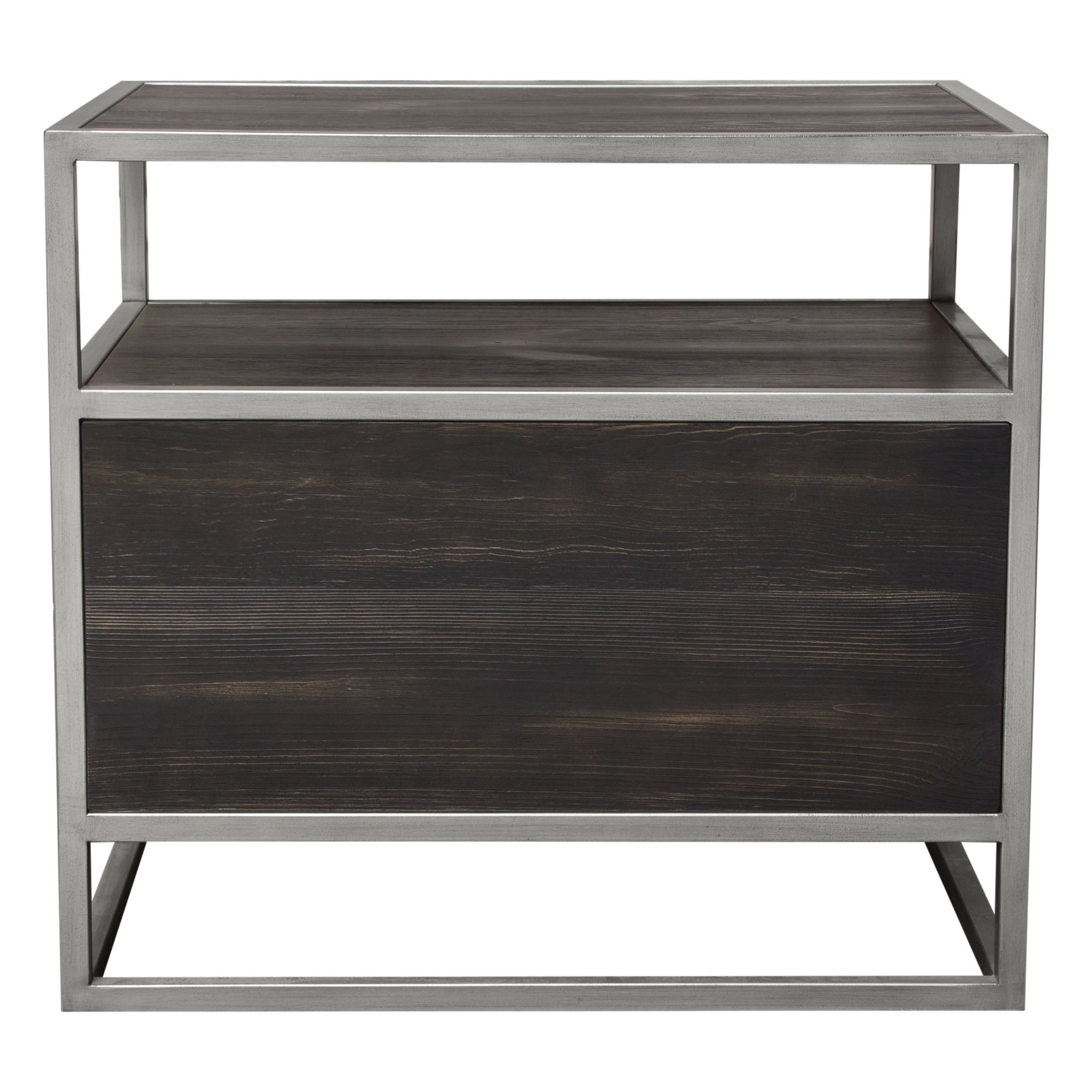 The Empire End Table Collection by Diamond Sofa offers a unique mix of wood and metal to create a clean and crisp presentation. The 2-Door End Table with interior shelving and its weathered brown veneer finish are supported by the hand brushed silver metal frame. Perfect for use as a Night Stand as well. Empire Collection also includes: Cocktail Table, Console Table, Bed