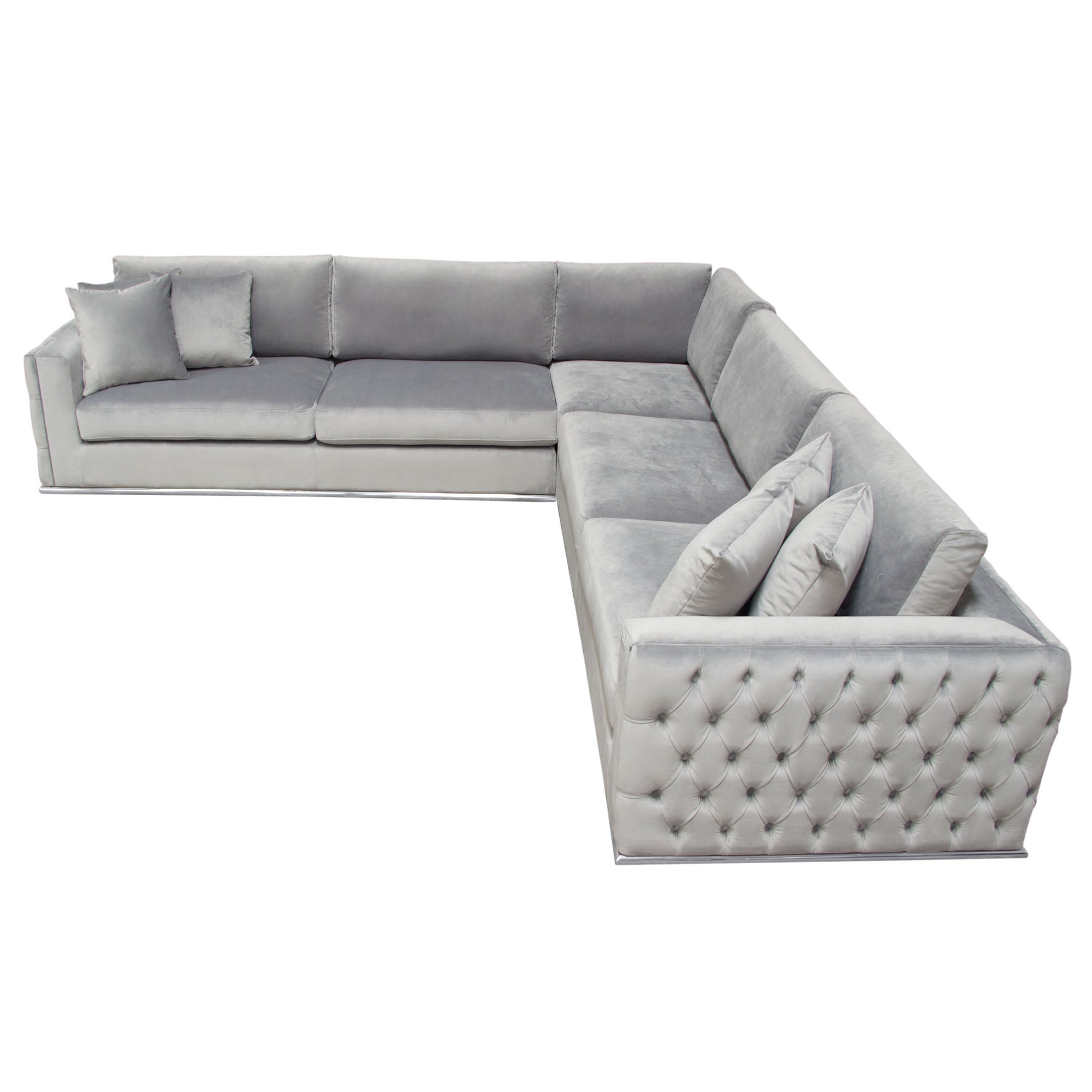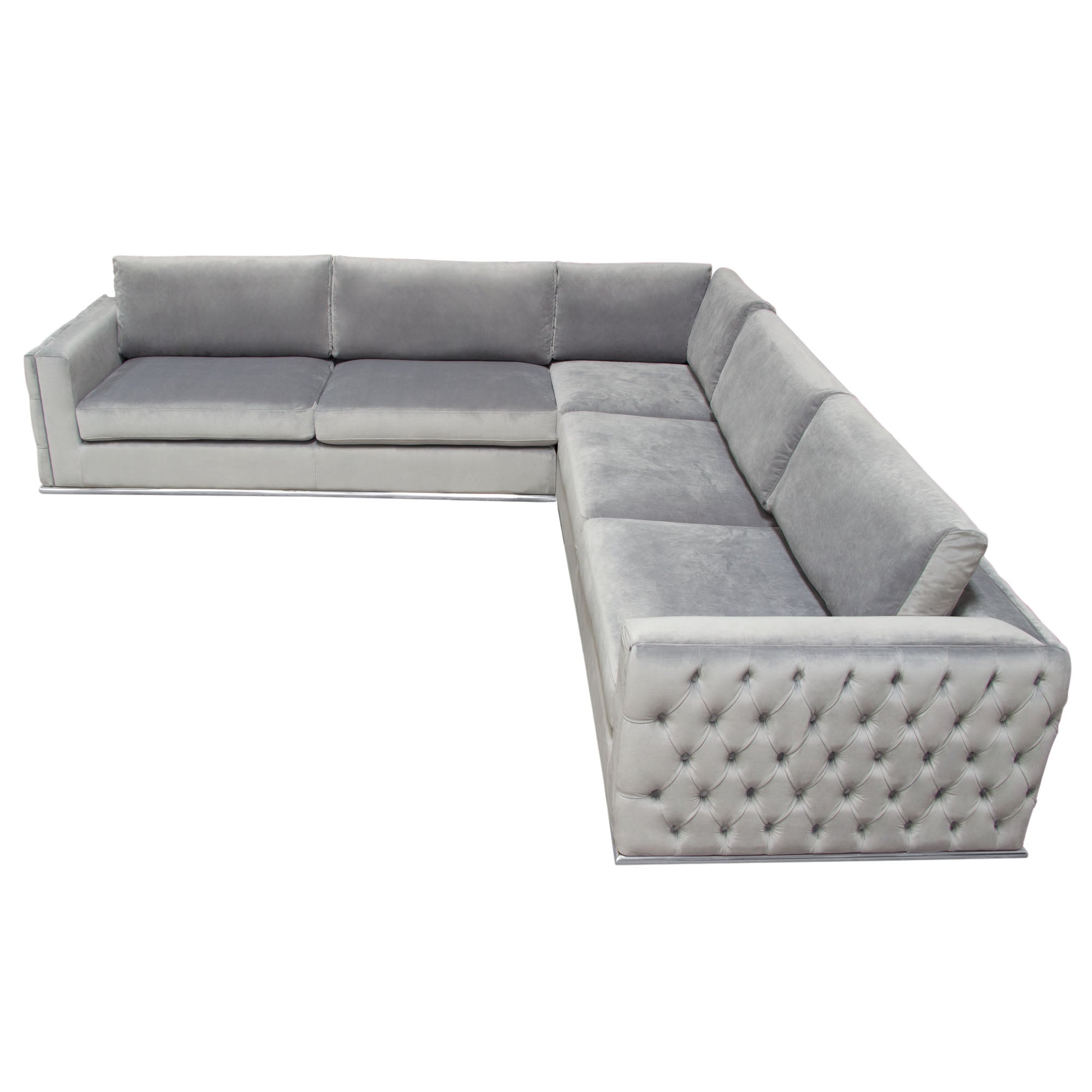 Envy 3PC Sectional in Platinum Grey Velvet with Tufted Outside Detail and Silver Metal Trim by Diamond Sofa