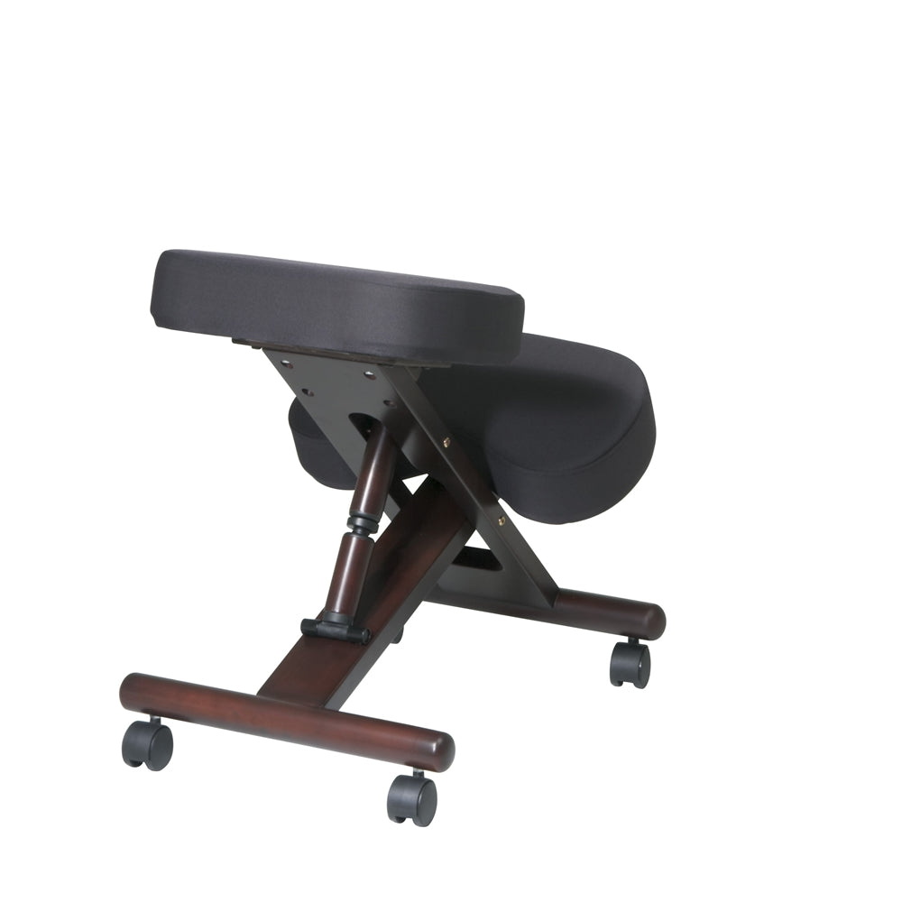 Ergonomically Designed Espresso Finished Wood Knee Chair Featuring Memory Foam Thick Padded Seat and Knee Pad. Manual Height Adjustment with Dual Wheel Carpet Casters.