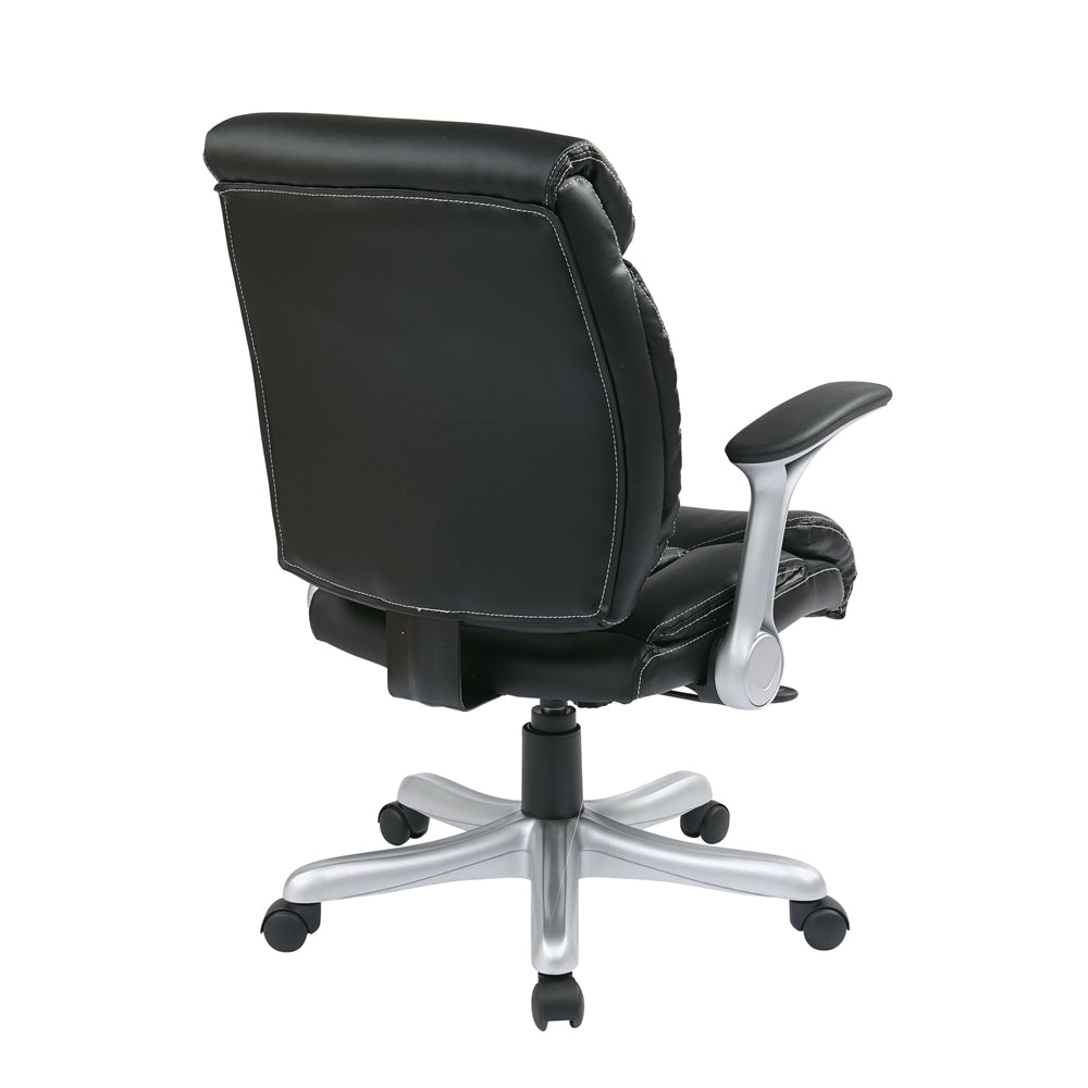 Work Smart Executive Bonded Leather Chair in Silver/Black with Padded Arms and Coated Base