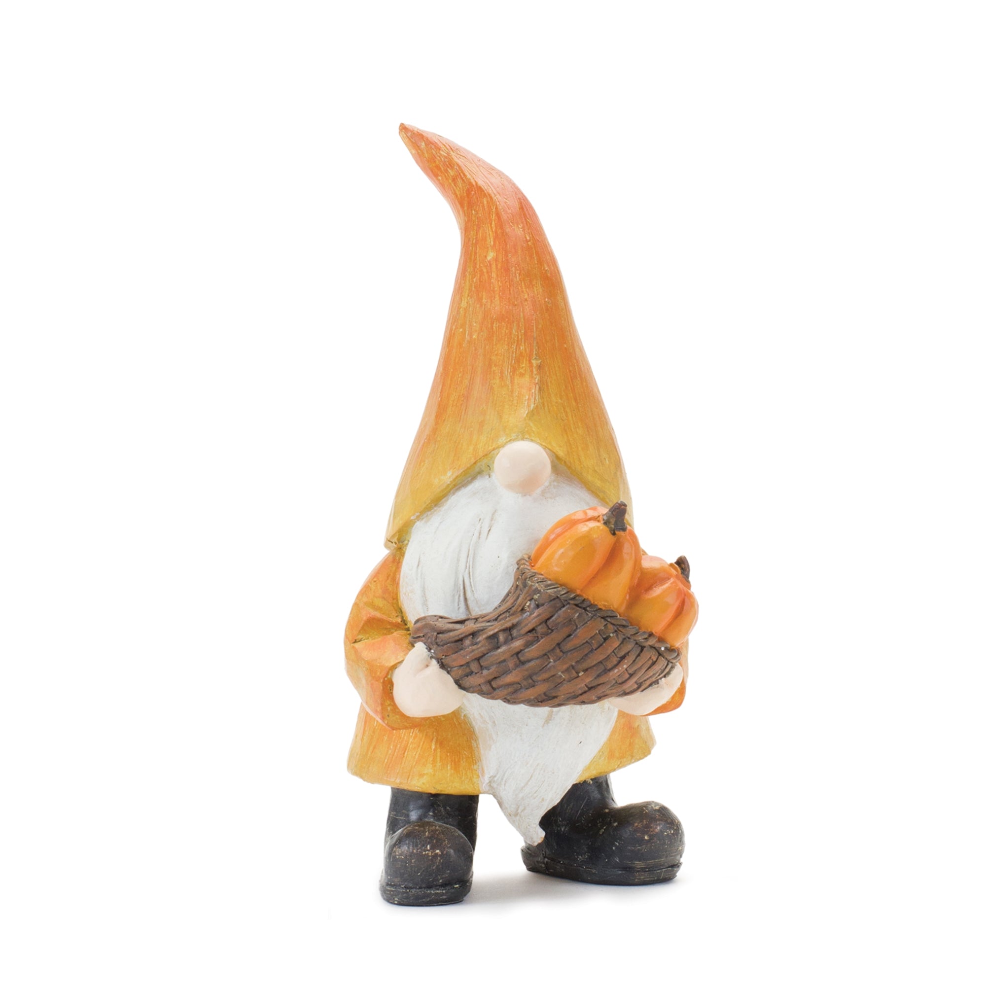 Make your home more festive this season with this set of Fall Gnome Figurines! Crafted with quality polyresin, these cheerful decorations feature bright orange and yellow tones, with pumpkin, sunflower, and acorn accents. The whimsical gnome characters will bring a smile to all visitors' faces. Add some fun to your home's fall decor and bring a touch of cheer to any space with these charming gnomes!, Fall Gnome (Set of 3) 7.25"H, 7.75"H, 8"H Resin