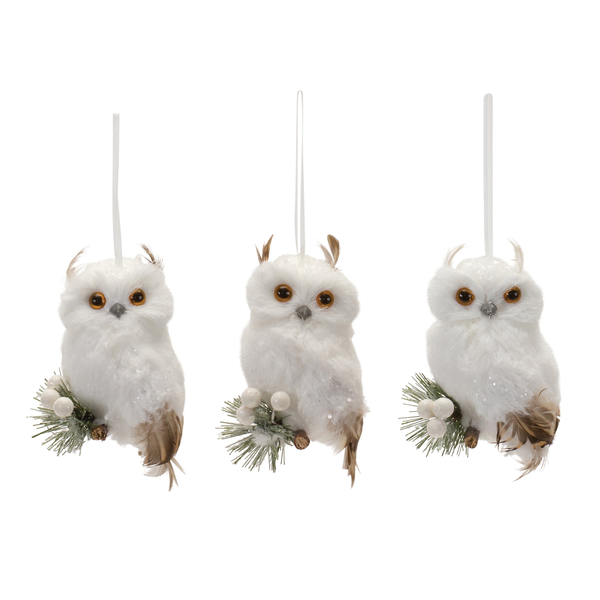 Add a touch of nature to your Christmas Tree with this beautiful set of Feathered Owl Ornaments. Featuring 6 pieces, this set's wintry white and brown tones, perched owl designs, and pine and berry accents are the perfect combination to create a memorable display. The quality foam and polyester composition with ribbon string hanger is sure to endure for seasons to come. Whether you're adding a touch of cheer to your home or gifting to a loved one, these ornaments will definitely bring smiles to your home. , Owl Ornament (Set of 6) 4"H Foam/Polyester