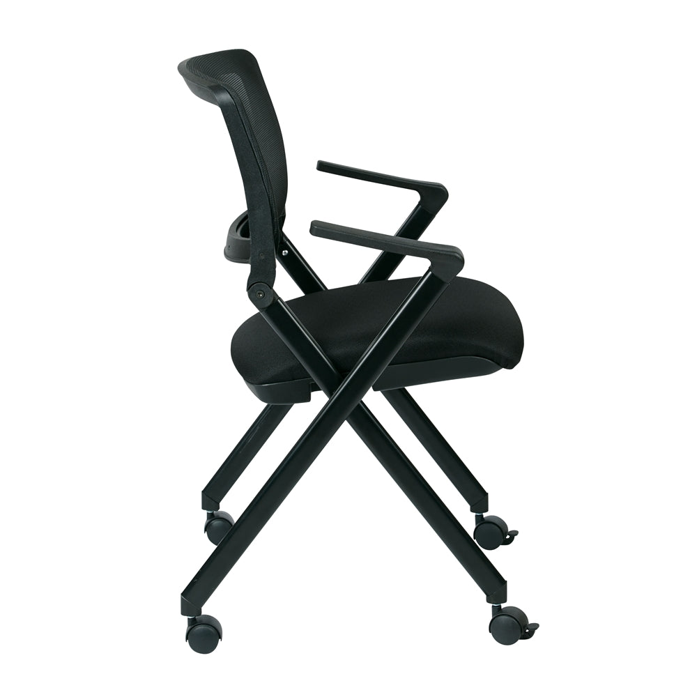 Folding Chair with breathable Mesh Back and Icon Black Seat in Black Finish Frame, 2-Pack