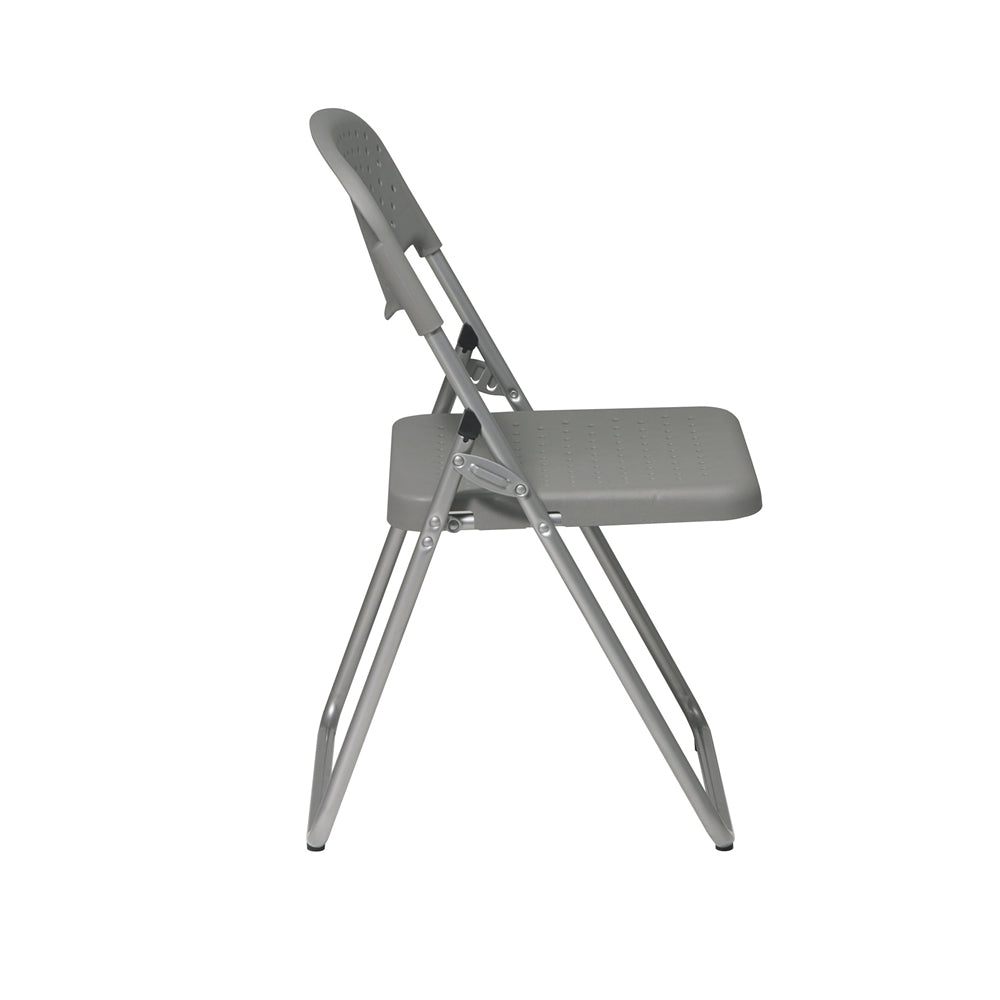 Folding Chair with Grey Plastic Seat and Back and Silver Frame. (4 Pack)
