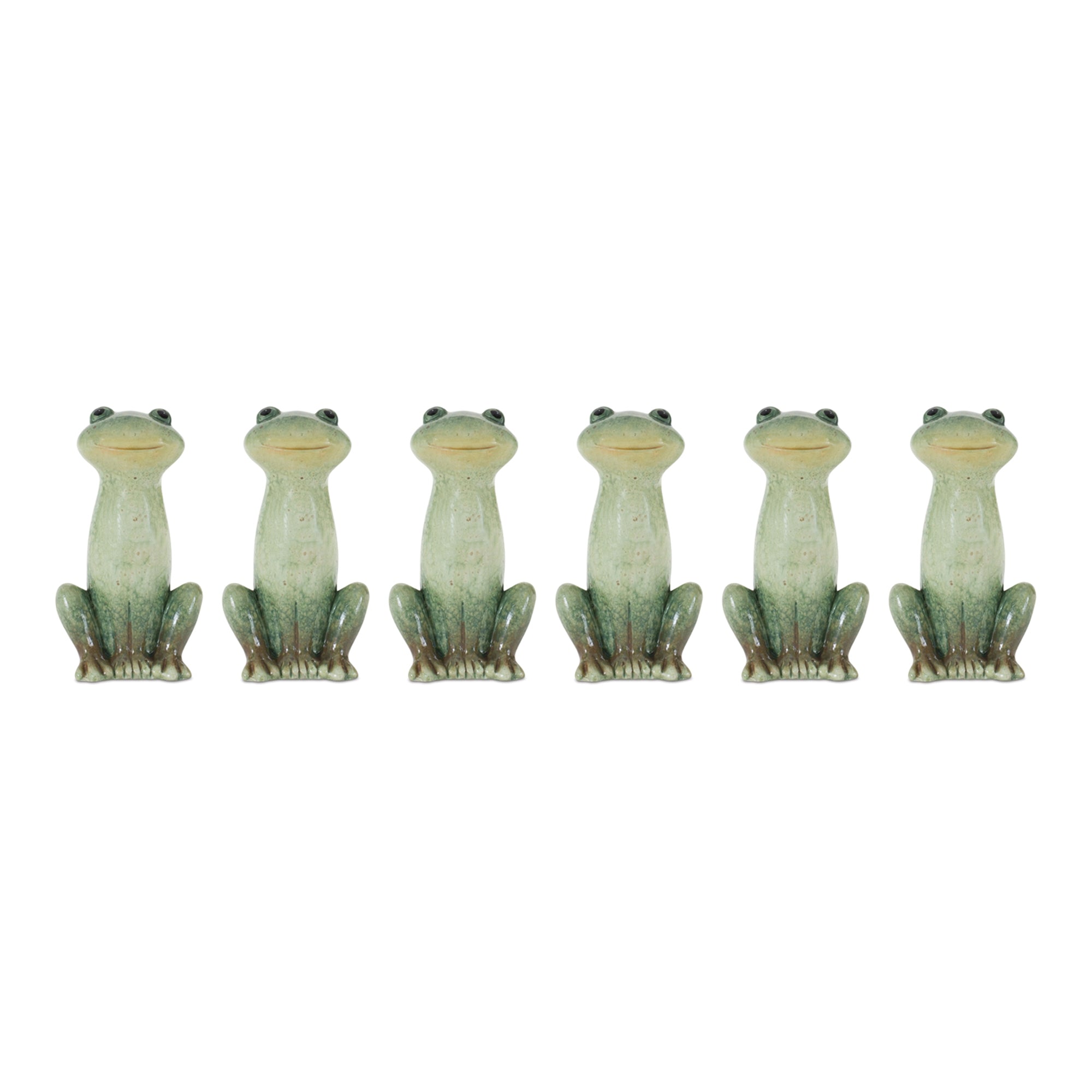 Brighten up your garden with the Garden Frog Figurines! Featuring a whimsical sitting frog design in earthy green and brown tones, these adorable frogs are made of polyresin and built to last for seasons to come. Perfect for sprucing up your indoor or outdoor-covered oasis, these figurines make a great focal point. Get your hands on these Garden Frog Figurines now and bring a little bit of sunshine into your home!, Frog (Set of 6) 5.5"H Resin