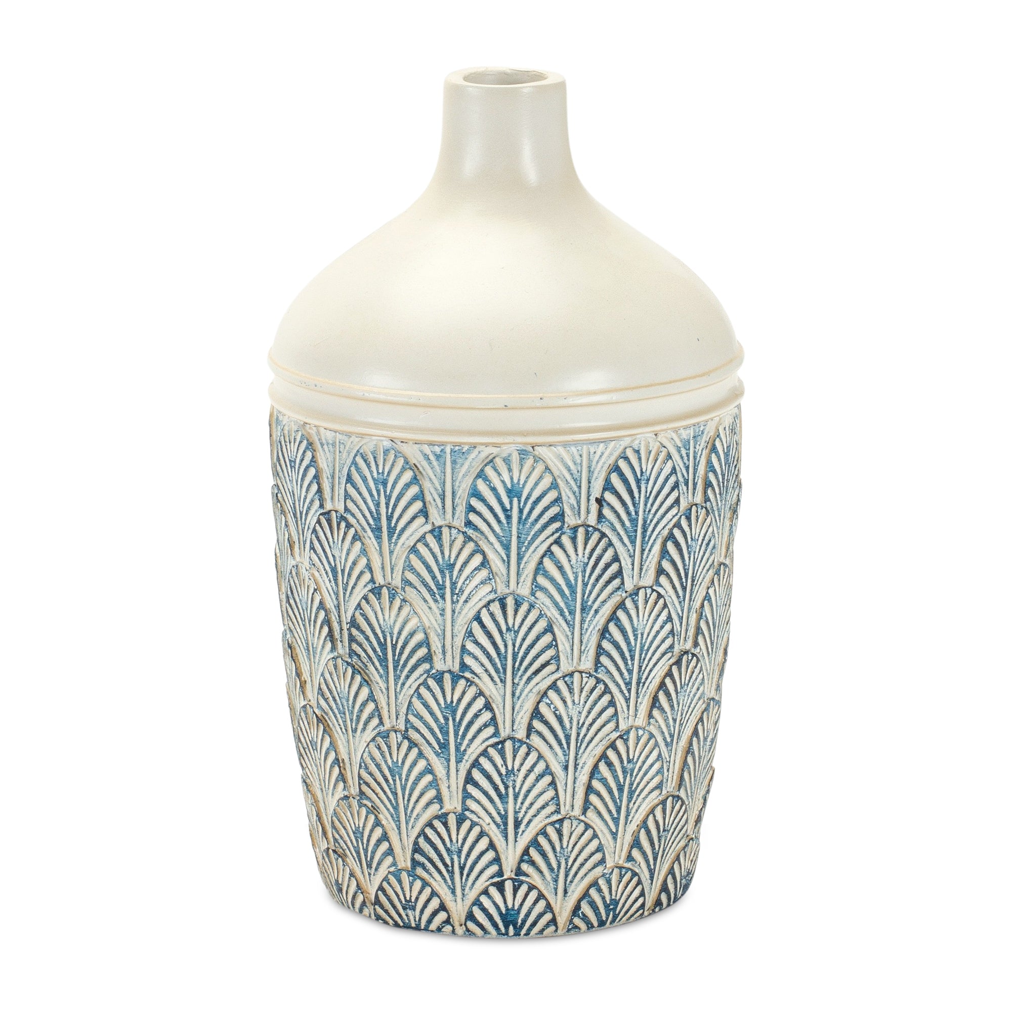Enhance your home decor with this beautiful set of Decorative Vases. Featuring three assorted sizes, the cool blue tones paired with the geometric pattern design is the perfect combination to create a stunning display. The quality polyresin composition is sure to last for seasons to come. Complete the look by adding a bunch of dried florals or fresh garden stems to each vase. Featured in Melrose International's Floral & Fauna collection., Vase (Set of 3) 5"H, 6"H, 6"H Resin