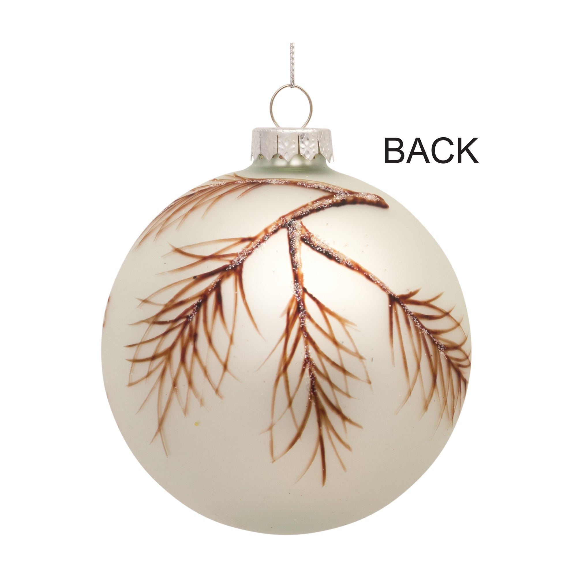 Glass Ball Ornament with Painted Bird Branch Design (Set of 6)