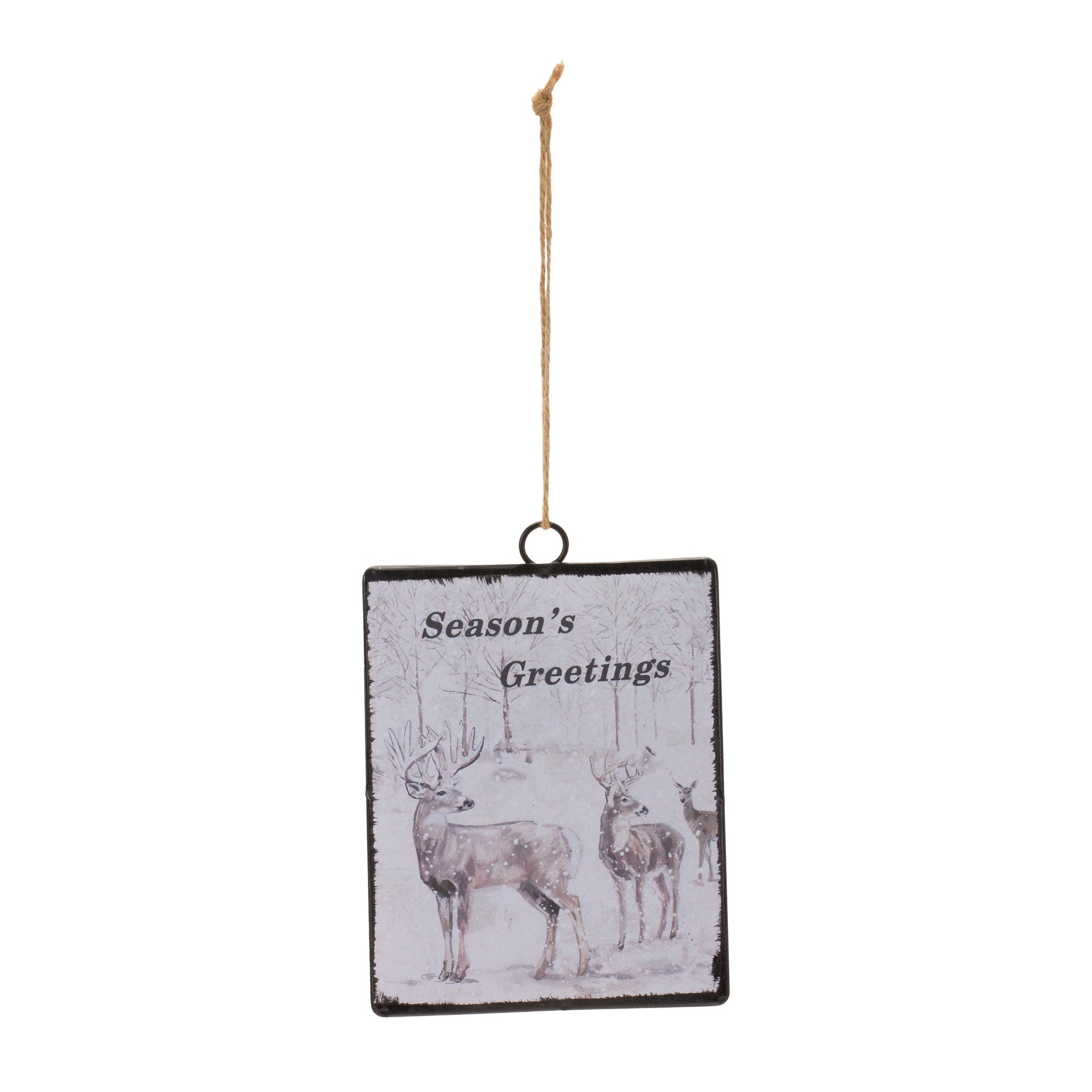 Add a rustic touch to your Christmas Tree with this beautiful set of Seasons Greetings Woodland Deer Ornaments. Featuring 12 pieces, this set's wintry brown and green tones, rustic woodland deer design, and "Seasons Greetings" sentiment accents are the perfect combination to create a memorable display. The quality glass composition with delicate jute string hanger is sure to endure for seasons to come. Whether you're adding a touch of cheer to your home or gifting to a loved one, these ornaments will definitely bring smiles to your home. , Ornament (Set of 12) 6.25"H Metal