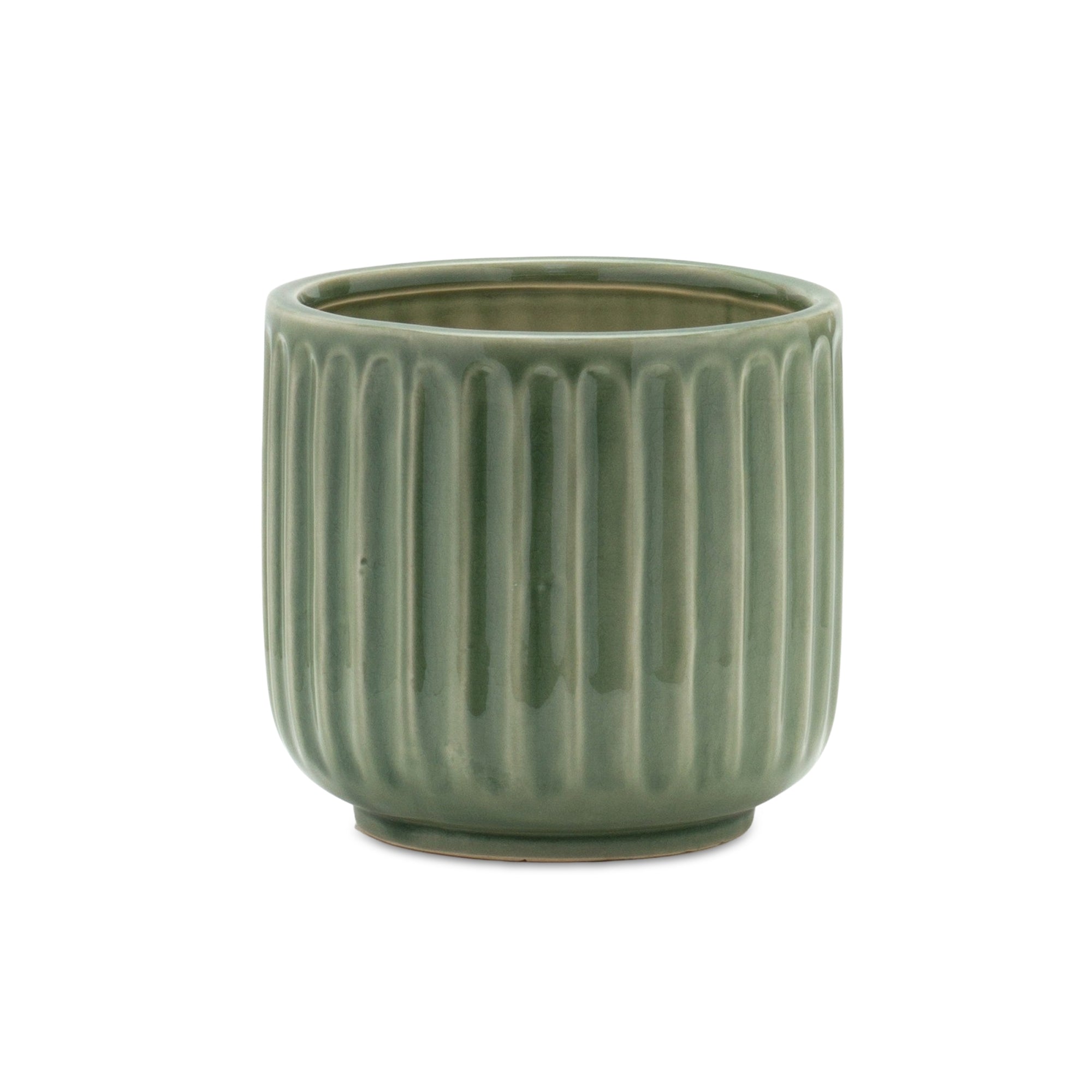 Green Ribbed Terra Cotta Pot Planter (Set of 3)