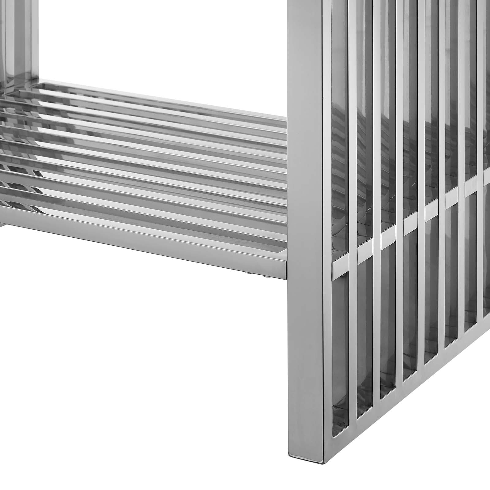 Introduce stark modernity to your bathroom space with the straight lines, polished detail, and angular profile of the Gridiron 30" Bathroom Vanity. Crafted with durable stainless steel, this open-concept vanity offers ample storage space underneath for towels, bathroom essentials, and more. This bathroom vanity features an artificial marble sink with an integrated countertop and 8" centerset faucet holes. A striking addition to the bathroom, this sink vanity rests on adjustable non-marking foot pads to protect flooring. Assembly required. Sink fixtures not included. Set Includes: One - Gridiron 30" Bathroom Vanity