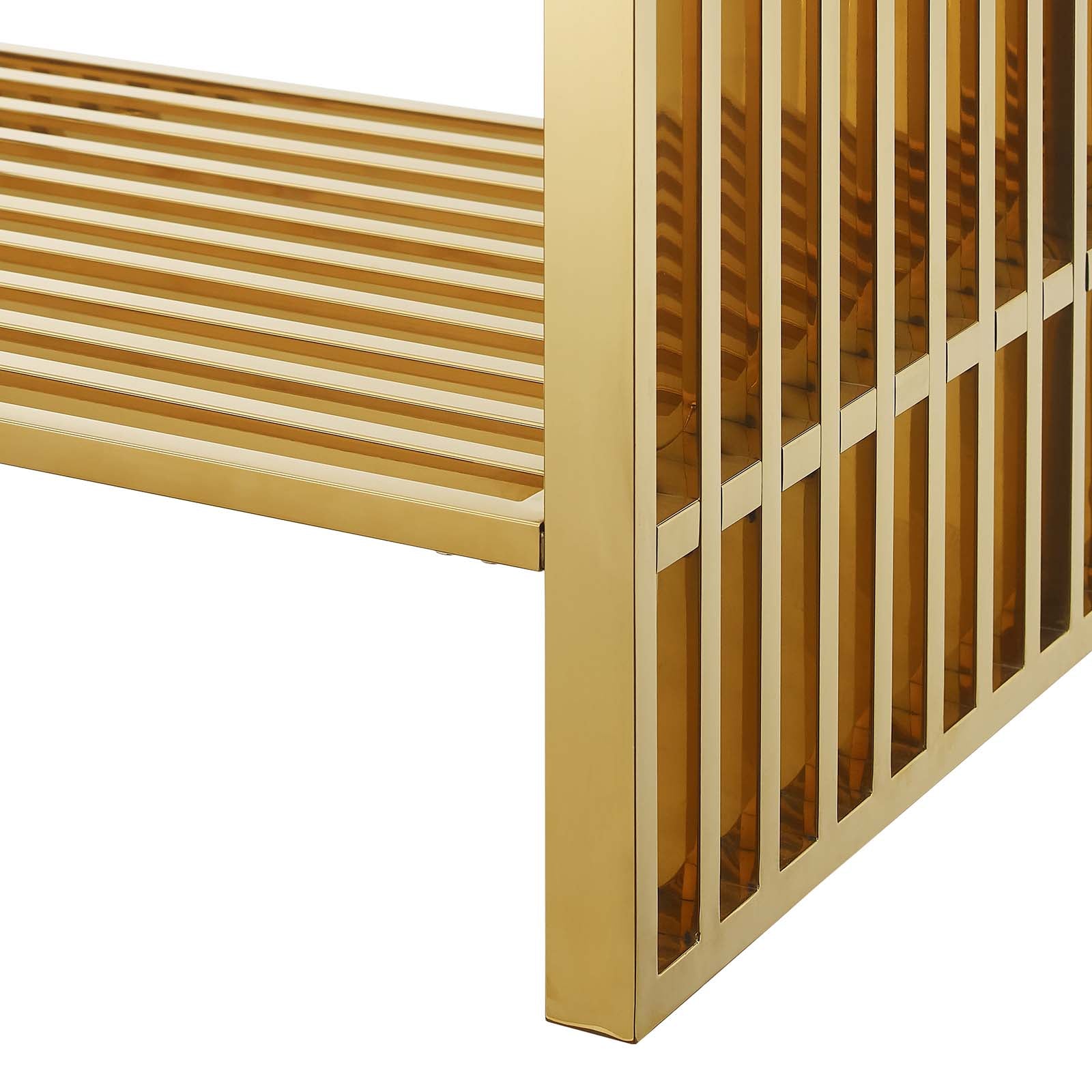 Introduce stark modernity to your bathroom space with the straight lines, polished detail, and angular profile of the Gridiron 36" Bathroom Vanity. Crafted with durable stainless steel, this open-concept vanity offers ample storage space underneath for towels, bathroom essentials, and more. This bathroom vanity features an artificial marble sink with an integrated countertop and 8" centerset faucet holes. A striking addition to the bathroom, this sink vanity rests on adjustable non-marking foot pads to protect flooring. Assembly required. Sink fixtures not included. Set Includes: One - Gridiron 36" Bathroom Vanity