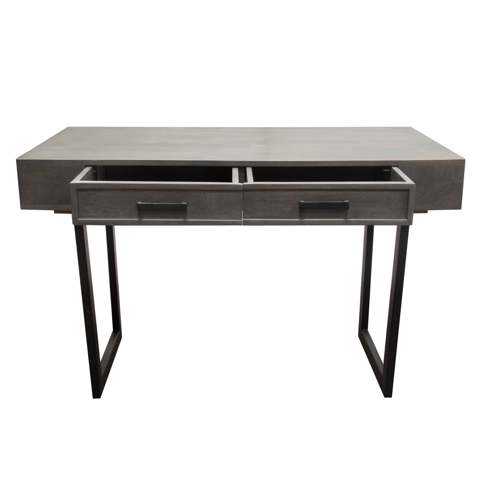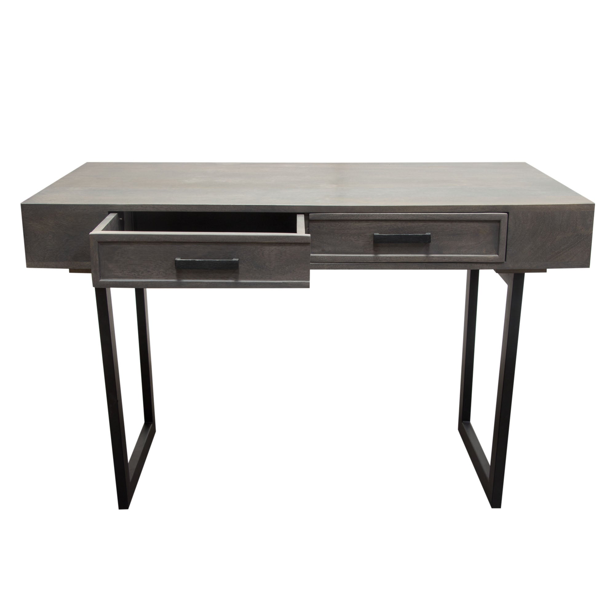 Hammond 2-Drawer Writing Desk in Solid Mango Wood Grey Finish & Black Iron Legs by Diamond Sofa