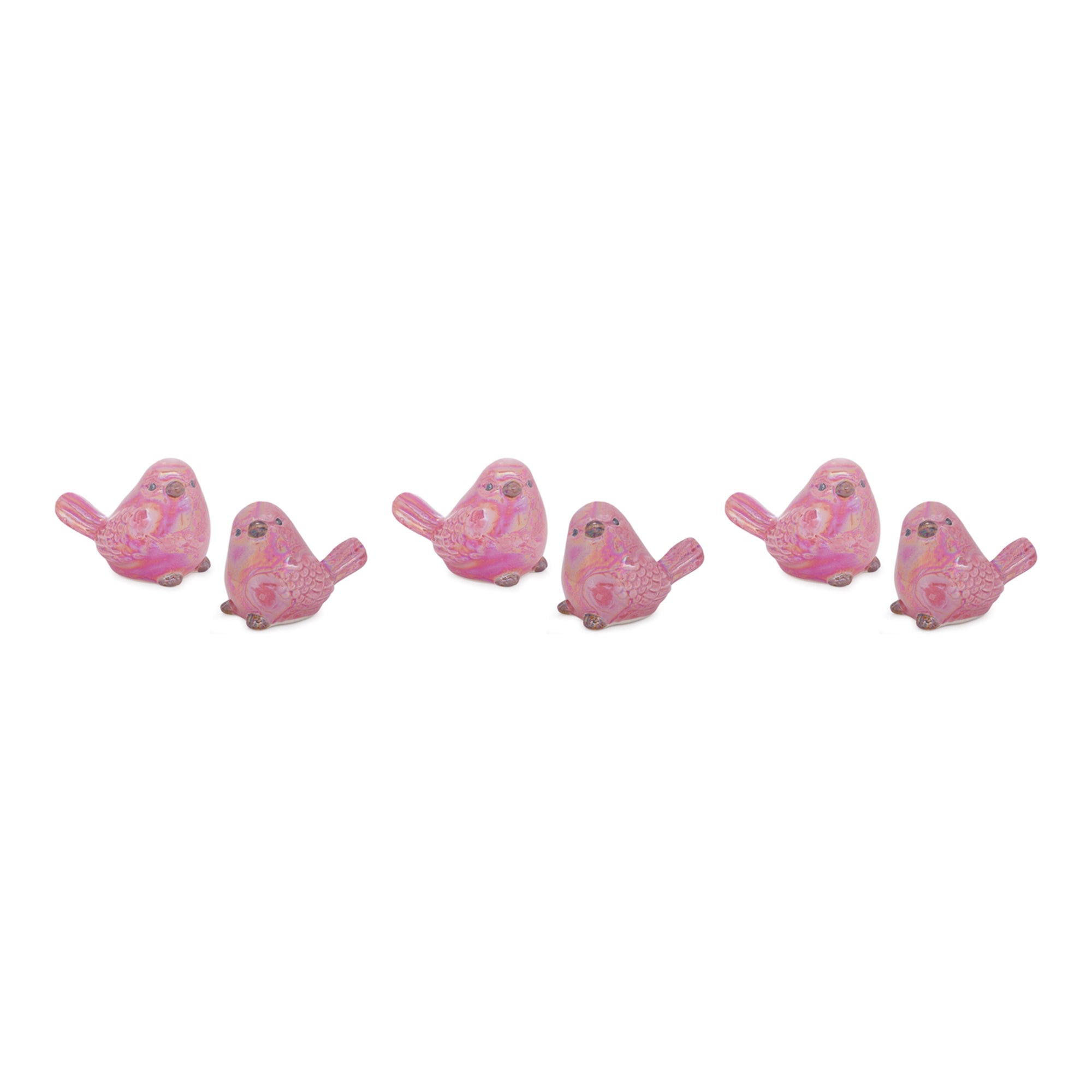 Elevate any space with these beautiful Irredescent Ceramic Bird Figurines and add a whimsical touch of nature to your home. Crafted from premium ceramic clay materials, our figurines feature an elegant and modern irredescent glazed finish in bright pink tones. These adorable bird pieces will bring sophistication and style to your living room, office, or bedroom. Whether you're looking to add a personal touch or enhance any space, these Ceramic Bird Figurines are perfect for the job., Bird (Set of 6) 3"H Ceramic