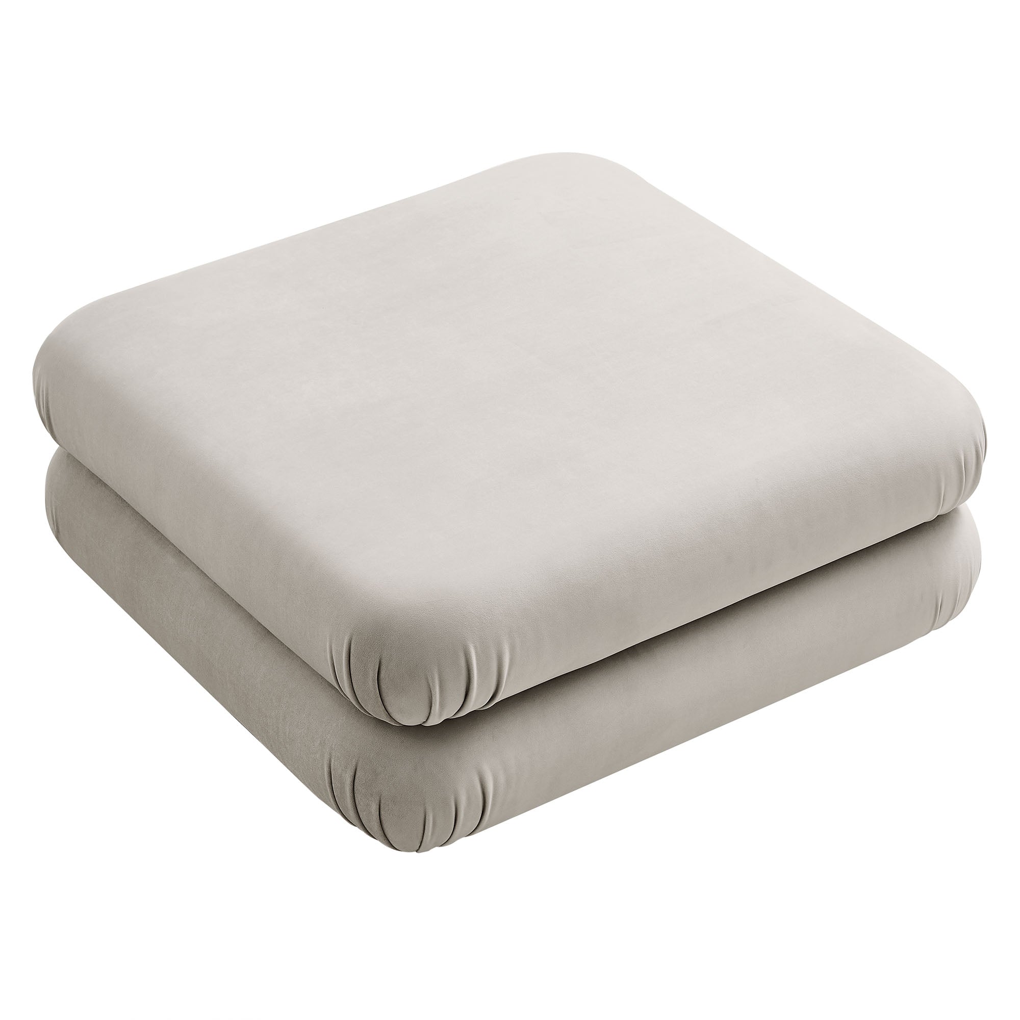 Reimagine your living space with the Jubilee Performance Velvet Ottoman, a striking blend of retro flair and modern comfort. With its sleek design, the Jubilee Accent Ottoman provides versatile functionality without compromising on style. Designed as part of the Jubilee sectional sofa set, this upholstered ottoman works beautifully on its own as a large square coffee table or pairs seamlessly with other Jubilee pieces to create a chaise, extended seating, or a cozy lounge sofa. Draped in stain-resistant performance velvet fabric, this oversized ottoman exudes luxury with its dense foam padding and intricate detailing. The thick, gently tufted cushion creates a plush, double stacked appearance with rounded edges for a cozy feel. With premium zigzag spring pocket coils for robust support and comfort, Jubilee is the perfect living room ottoman coffee table or fabric footstool. Equipped with plastic foot pads to protect your floors, this upholstered coffee table is the retro ottoman seat your modern decor needs. Assembly Required. Weight Capacity: 331 lbs. One - Jubilee Ottoman