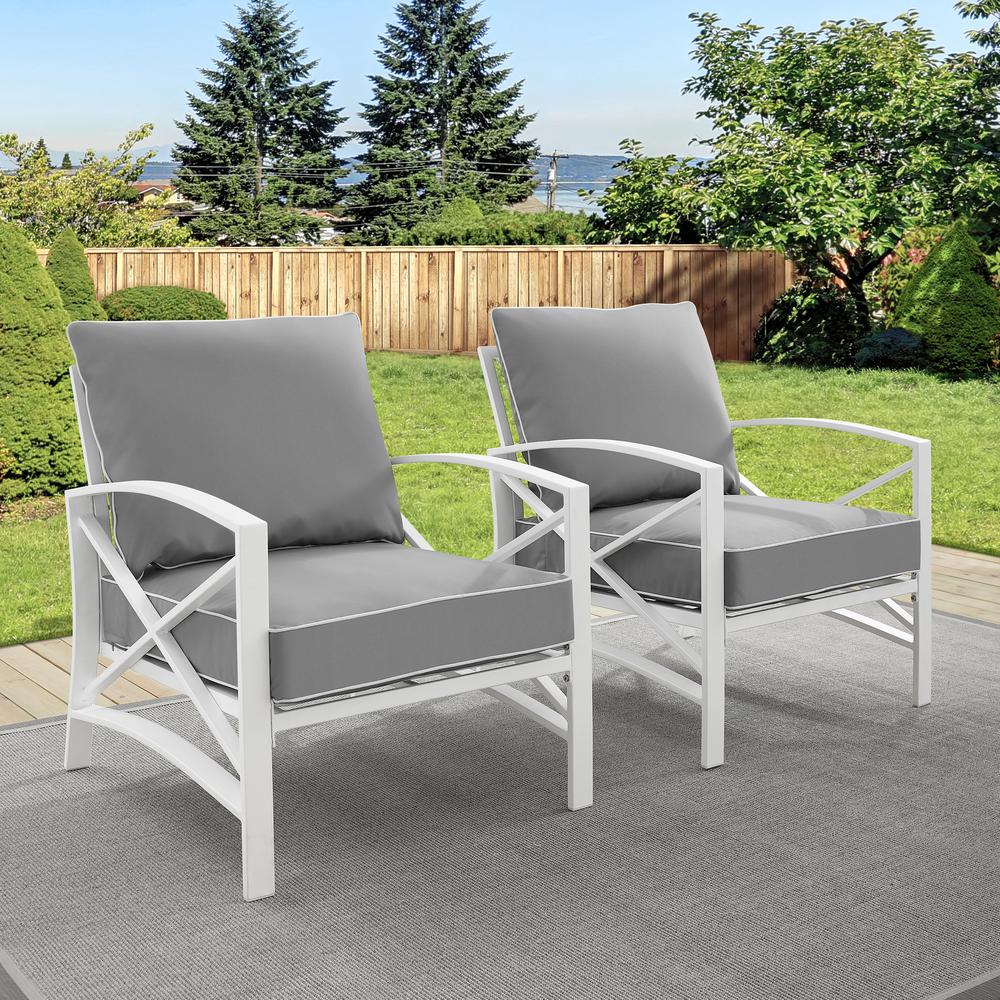 Kaplan 2Pc Outdoor Metal Armchair Set Gray/White - 2 Chairs