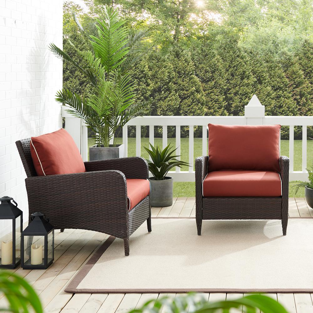 Kiawah 2Pc Outdoor Wicker Chair Set Sangria/Brown - 2 Armchairs