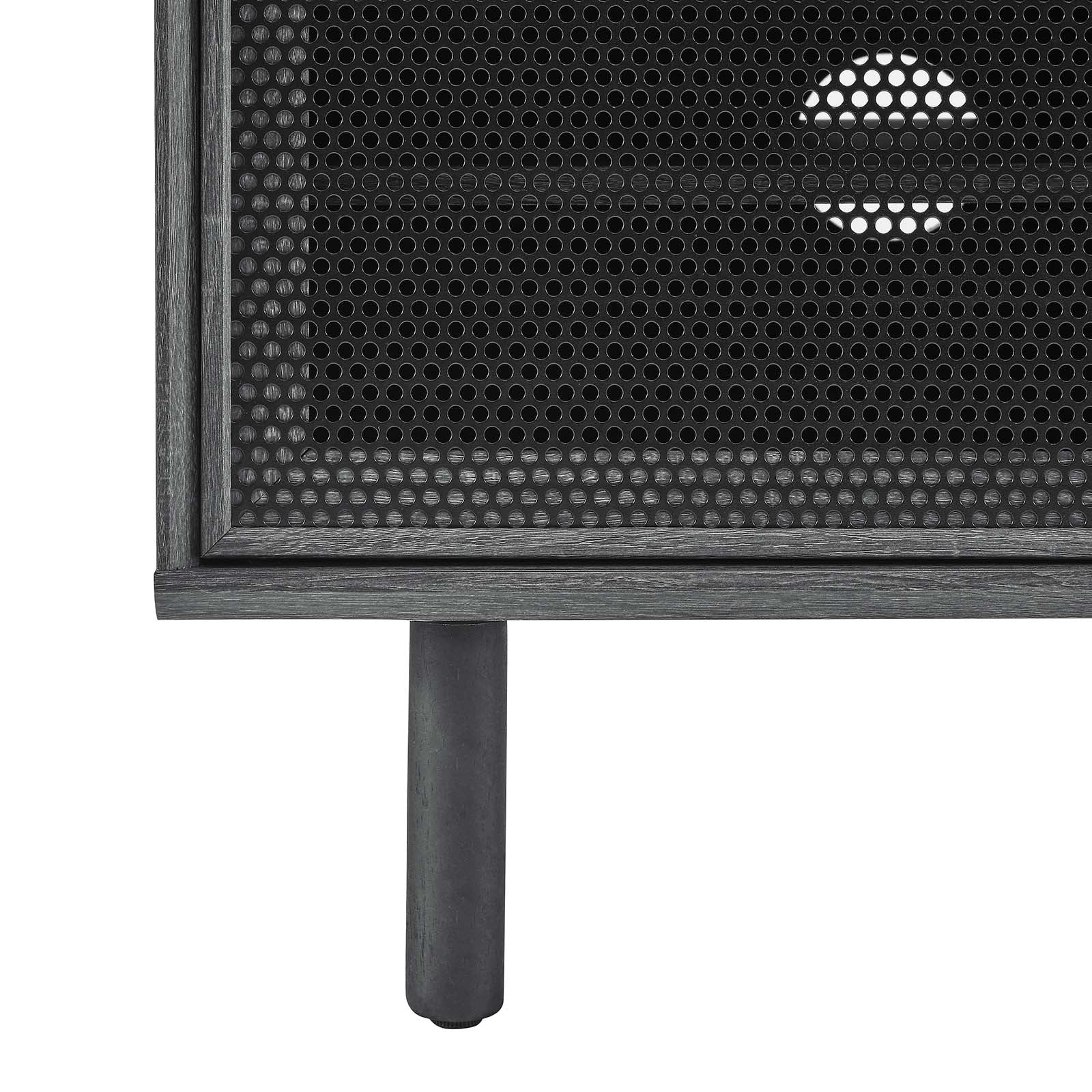 • Bullets: Modern Urban TV Stand Metal Mesh Sliding Doors MDF and Particleboard Cable Management Holes Wood Legs Non-Marking Foot Pads Weight Capacity: 137 lbs.