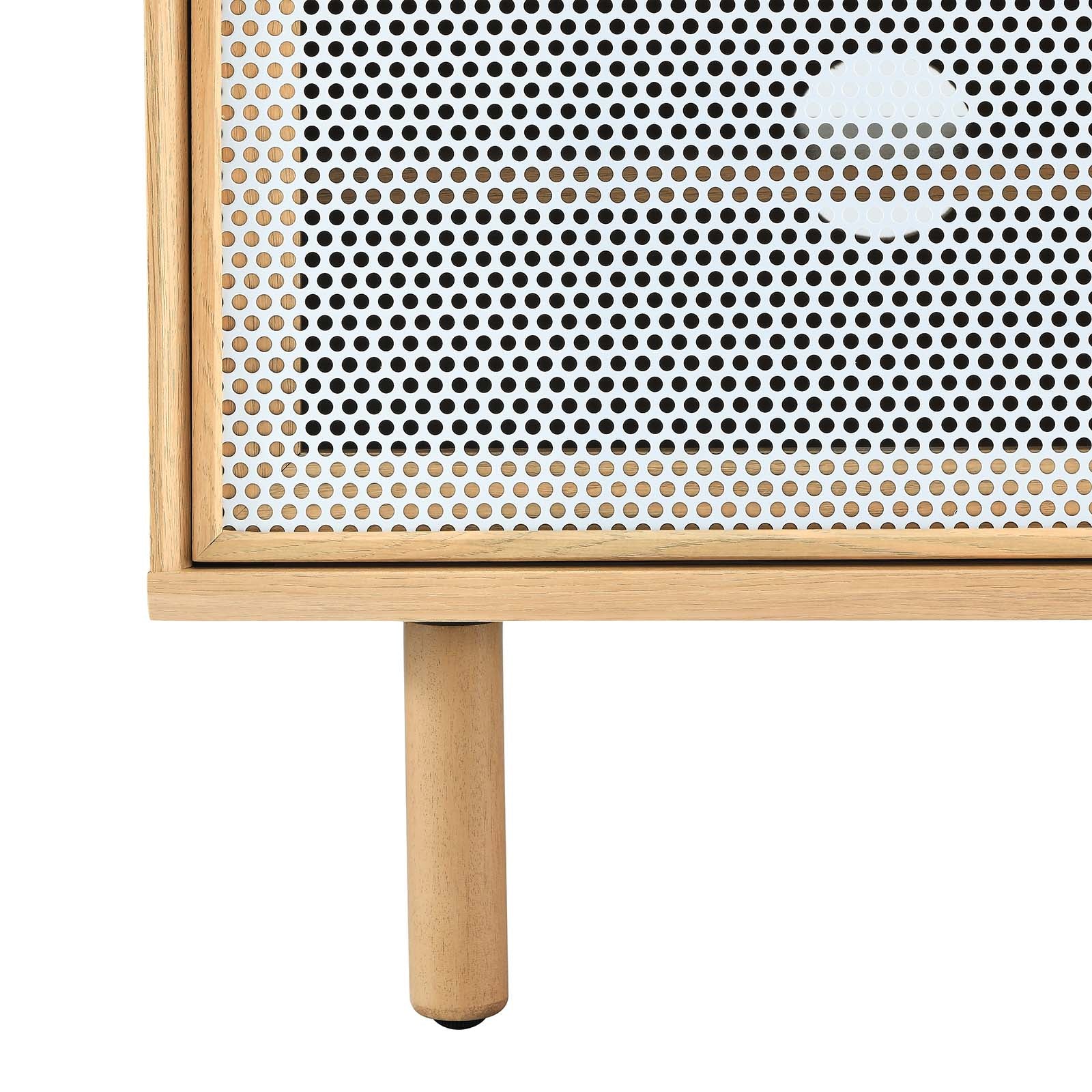 Bring urban flare to your living space with the modern design of the Kurtis 47" TV Stand. Featuring sliding metal mesh doors, this entertainment center brings industrial design to the living room, bedroom, home office, or lounge area. This media stand is crafted from MDF and particleboard with a natural wood grain design. Offering ample storage space for all your media essentials, this TV console features an open shelving area concealed by mesh sliding doors with cable management holes that keep things organized and allow for flow through ventilation. Resting on sturdy wood legs with non-marking foot pads to protect flooring, this low-profile TV stand accommodates flat screen TVs up to 52 inches. Assembly required. Weight Capacity: 137 lbs. Set Includes: One - Kurtis 47" TV Stand