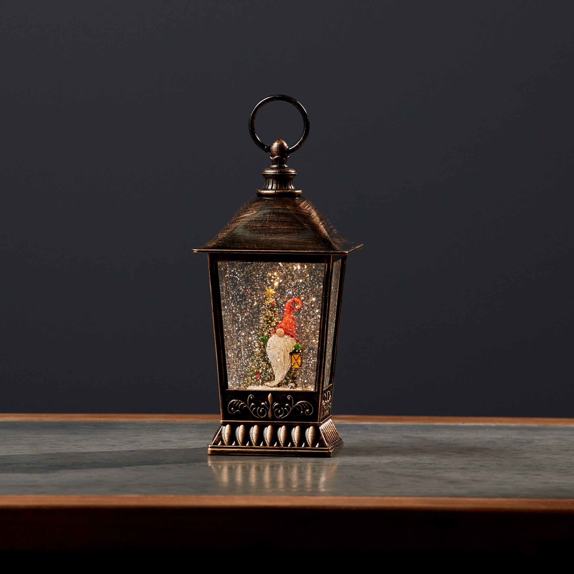 LED Snow Globe Lantern with Gnome and Tree 11"H