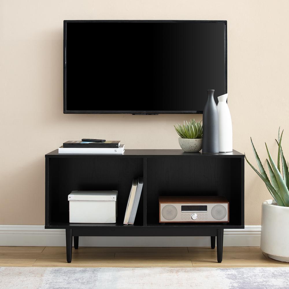 Simple, practical, stunning. The Liam Medium Record Storage Console Cabinet blends modern functionality and mid-century style. Perched atop classic tapered legs, this storage console features two divided sections sized perfectly for your precious vinyl. With a low profile, this storage console will complement any room in the home without overwhelming the space. Whether itÕs used for record storage or for other household items, the Liam Medium Record Storage Console Cabinet is the versatile home organization solution you need.