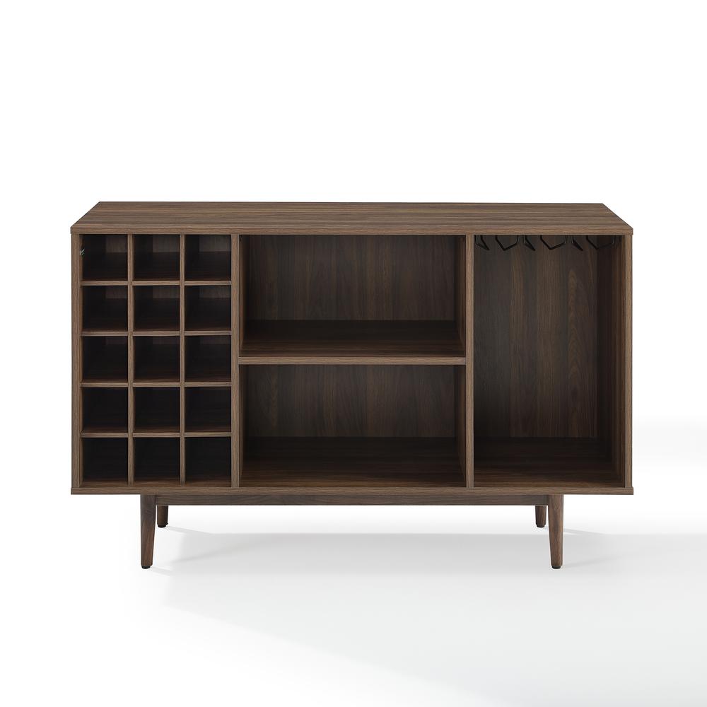 Simple and stunning, the Liam Wine Storage Sideboard has a mid-century style perfect for the modern wine lover. Perched atop classic tapered legs, this sideboard features three open compartments that can accommodate dishes and decor, plus a 15-bottle wine rack and slots for wine glasses. Add the Liam Sideboard to your dining or family room for wine storage and display space.