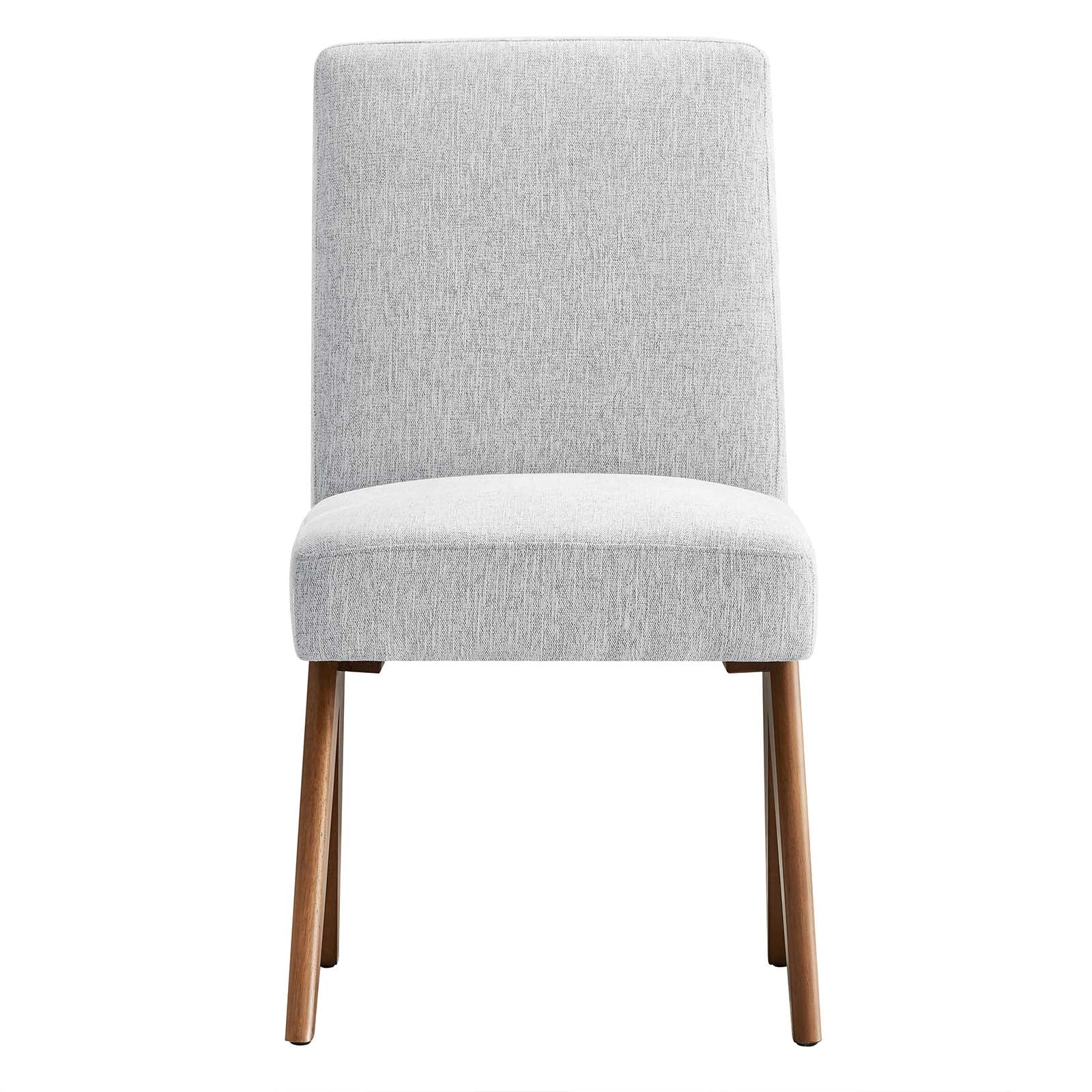 Add comfort and style to your home with Lyra Heathered Fabric Dining Side Chairs - Set of 2. These dining chairs are chic and luxurious, featuring a relaxed design with a subtly angled backrest. Lyra comes upholstered in woven heathered fabric, creating a comfortable resting spot where you can enjoy a meal or sip on a glass of wine. Featuring a sturdy plywood frame, inverted V-shaped rubberwood legs, and dense foam padding, these modern dining room chairs provide stability while enhancing the dining room, bedroom or entryway. Includes non-marking feet. Assembly Required. Weight Capacity: 331 lbs. Set Includes: Two - Armless Dining Chair