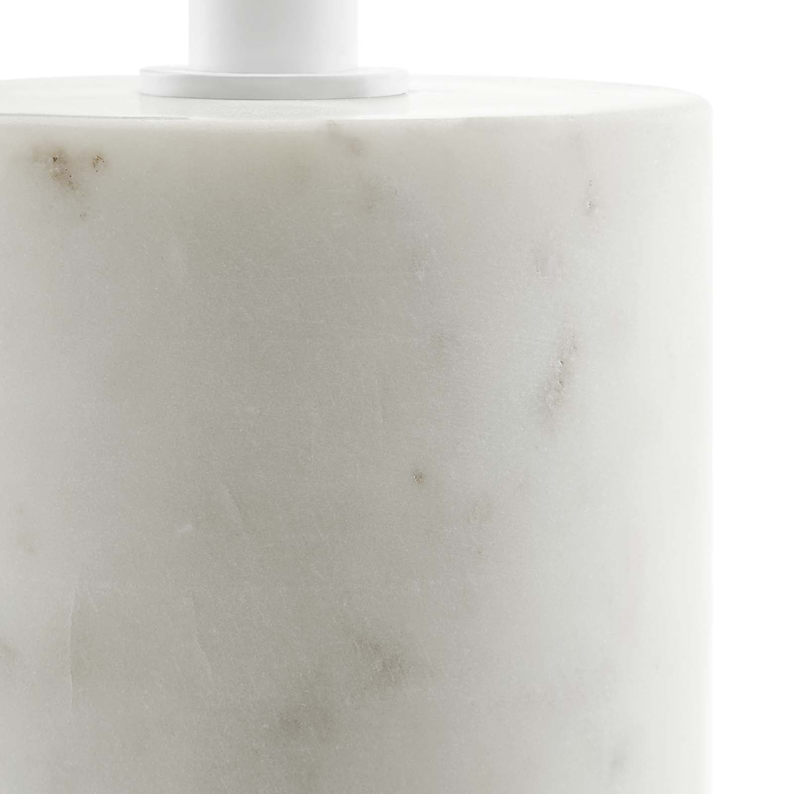 • Bullets: Iron Tabletop & Pedestal White Marble 8-inch High Cylinder Base Versatile Accent Table Non-Marking Pad Assembly Required