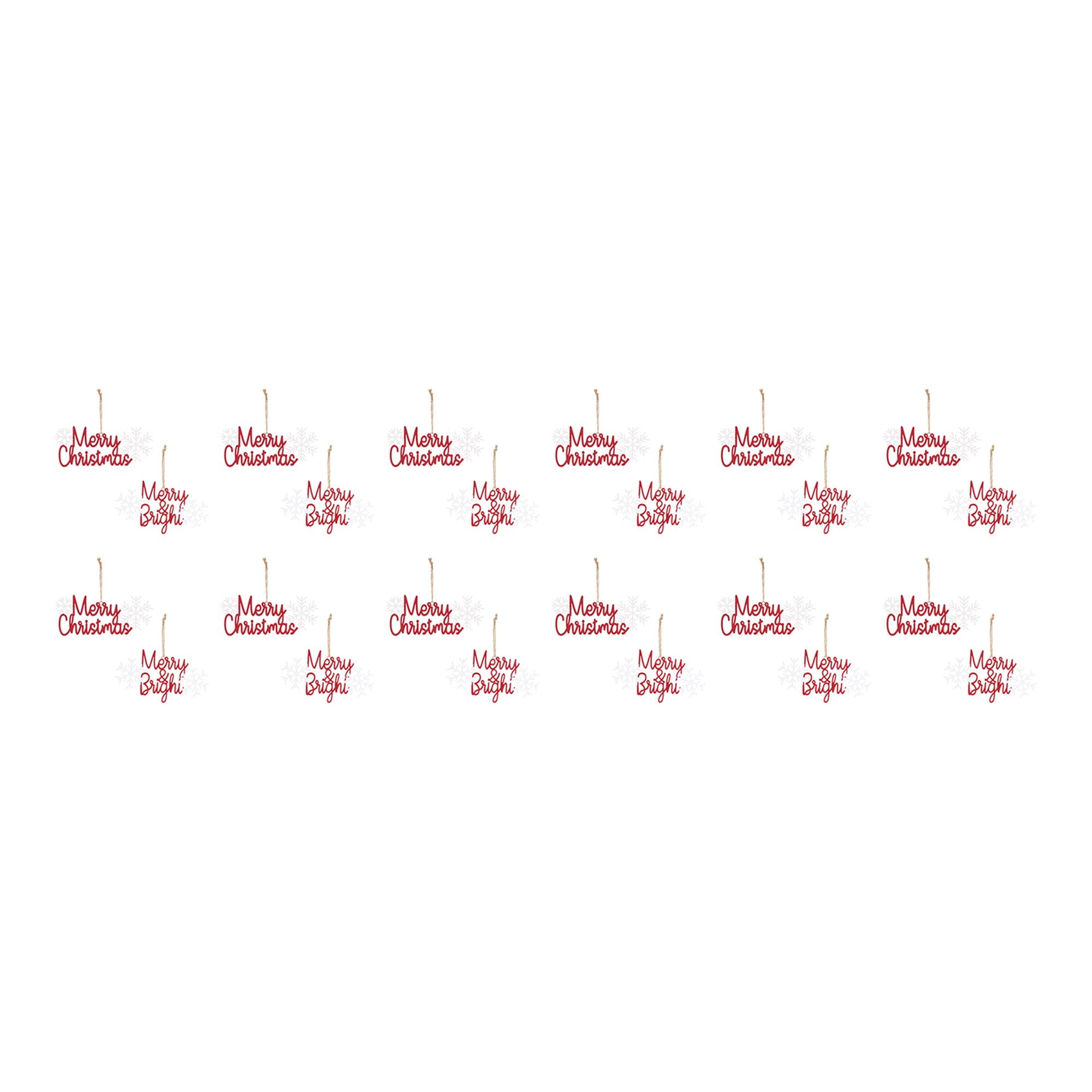 Add a traditional touch to your Christmas Tree with this beautiful set of Holiday Sentiment Ornaments. Featuring 12 pieces, this set's festive red and white tones, traditional "Merry Christmas" and "Merry & Bright" sentiments, and cut-out metal snowflake designs are the perfect combination to create a memorable display. The quality metal composition with delicate jute string hanger is sure to endure for seasons to come. Whether you're adding a touch of cheer to your home or gifting to a loved one, these ornaments will definitely bring smiles to your home. , Merry & Bright and Merry Christmas Ornament (Set of 12) 8"L x 3.75"H Metal