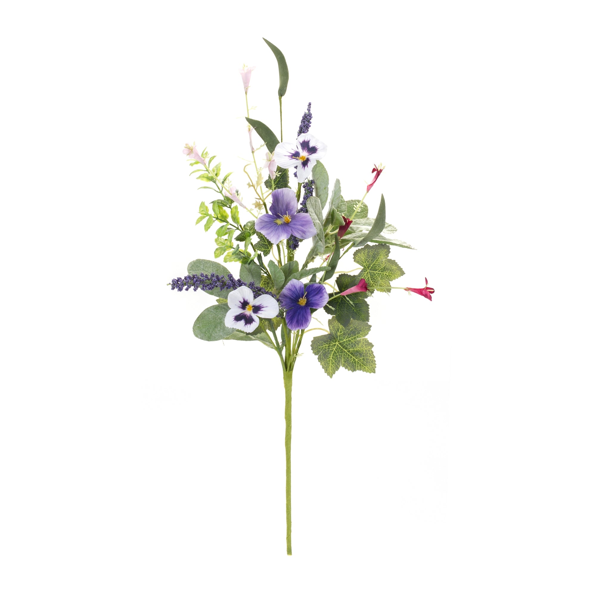 Add a pop of natural color to your home with this beautiful Pansy Spray. Featuring 6 pieces, this set's Pansy flowers paired with the assorted foliage accents makes this piece the perfect additon to your home decor. The quality polyester flowers and leaves are sure to last for seasons to come. Display the piece in a vase or decorative container to complete the look., Pansy Spray (Set of 6) 21"H Polyester