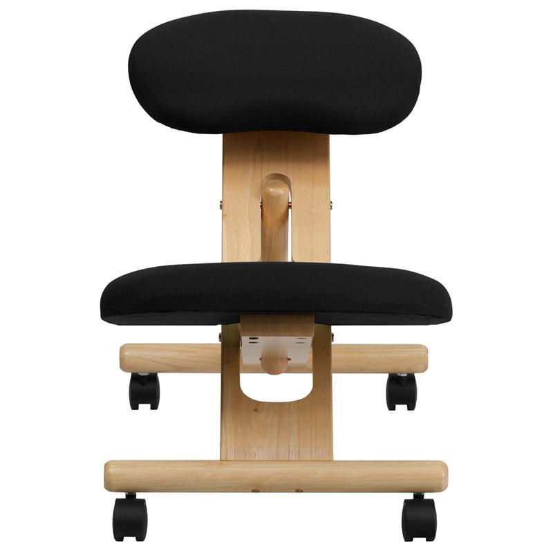 Mobile Wooden Ergonomic Kneeling Office Chair in Black Fabric