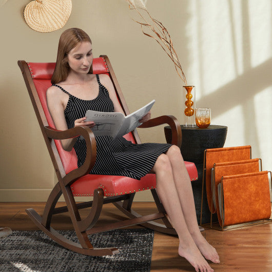 Modern Rocking Chair with PU Cushion and Rubber Wood Frame-Red