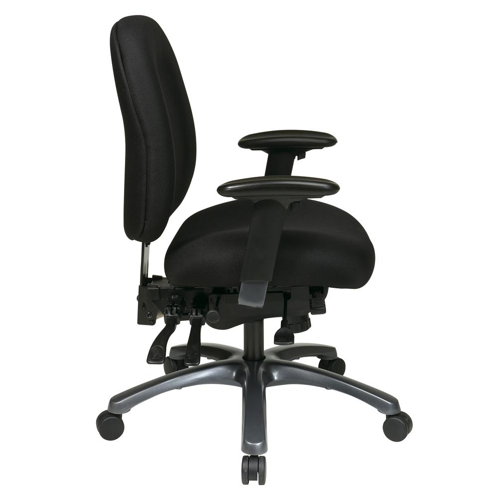 Work in comfort and style in the new Pro-Line II¨ Multi-Function Mid-Back Chair. Perfect for workers who spend extended periods of time at their work stations, this intelligently designed chair provides comfort and support to both your body and mind. Intelligently outfitted with a vertically adjustable Ratchet back height adjustment, this chair is ideal for folks of large and small statures alike. The thick contoured molded back with built in lumbar support, and high quality foam seat affords for hours of cozy seating, minimizing fatigue and alleviating pressure on the spine. The one touch pneumatic seating adjustments allow you to elevate to the perfect height while the deluxe Multi-function control with forward tilt lets you adjust the seat and back angles to help reduce fatigue in your back and thighs. Complete with height and width adjustable arms with soft PU pads and a durable heavy duty Titanium finish base with dual wheel carpet casters that provide for effortless mobility across tile and carpet floors alike. With advanced design and quality construction, this seating option is no doubt an office favorite. Add to cart now for online savings on this durable office chair.