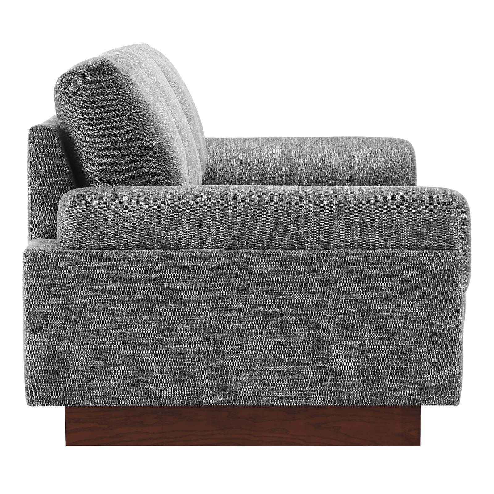 Experience contemporary luxury with the Oasis Fabric Upholstered Sofa bringing modern design and a streamlined silhouette to your living room, lounge area, or office. Featuring a deep, cozy seat, this comfortable couch offers unparalleled relaxation with armrests that resemble oversized bolster pillows. The dense foam padded cushions with pocket springs provide premium support, while the sinuous spring support system ensures lasting durability. Covered in stain-resistant polyester fabric, this upholstered sofa exudes elegance while resting on a sturdy wood veneer plinth base. Assembly is a breeze, allowing you to effortlessly bring this luxurious piece into your home. Elevate your living space with this modern sofa that combines comfort, style, and convenience. Weight Capacity: 600 lbs. Set Includes: One - Oasis Upholstered Sofa